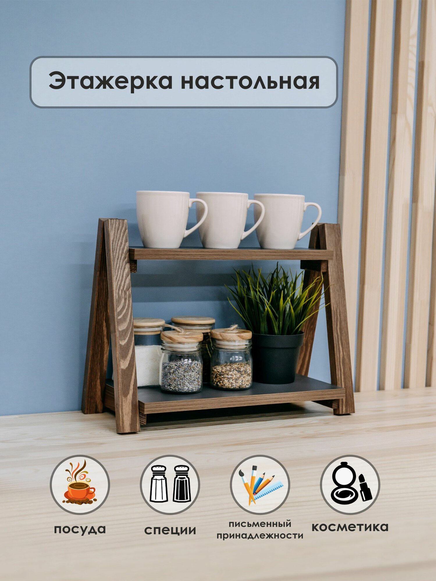 Отзывы на Этажерка полка настольная деревянная на кухню, в гостиную, в детскую