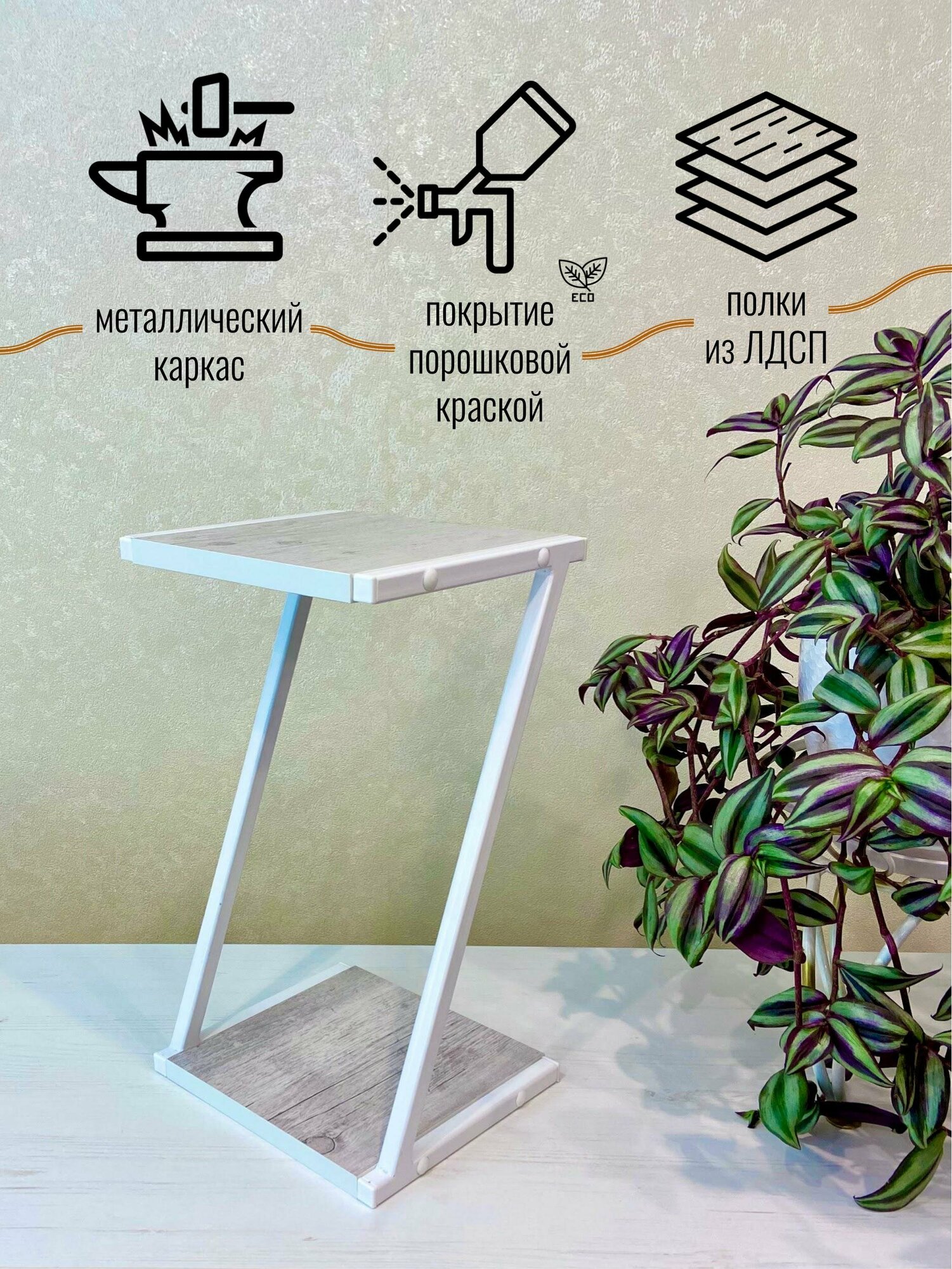 Этажерка ZENA 220-40 для комнатных растений 2 секции металл, ЛДСП, белая, дуб бунратти
