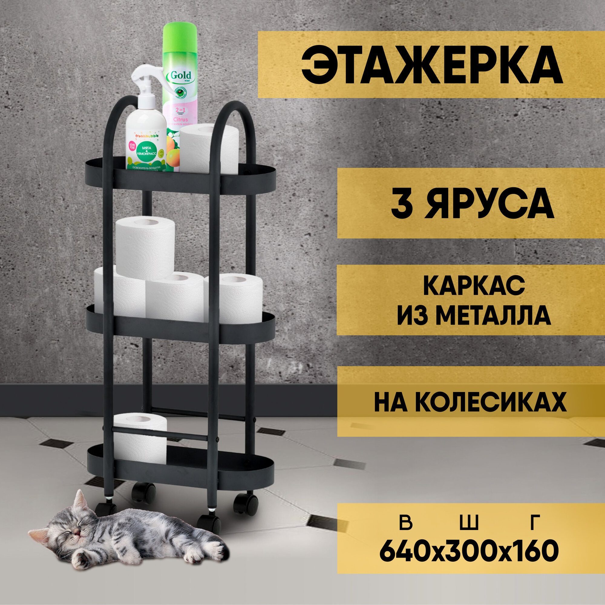 Отзывы на Стеллаж металлический, этажерка для ванной, с полками, черная, этажерка узкая My Space TB3PO
