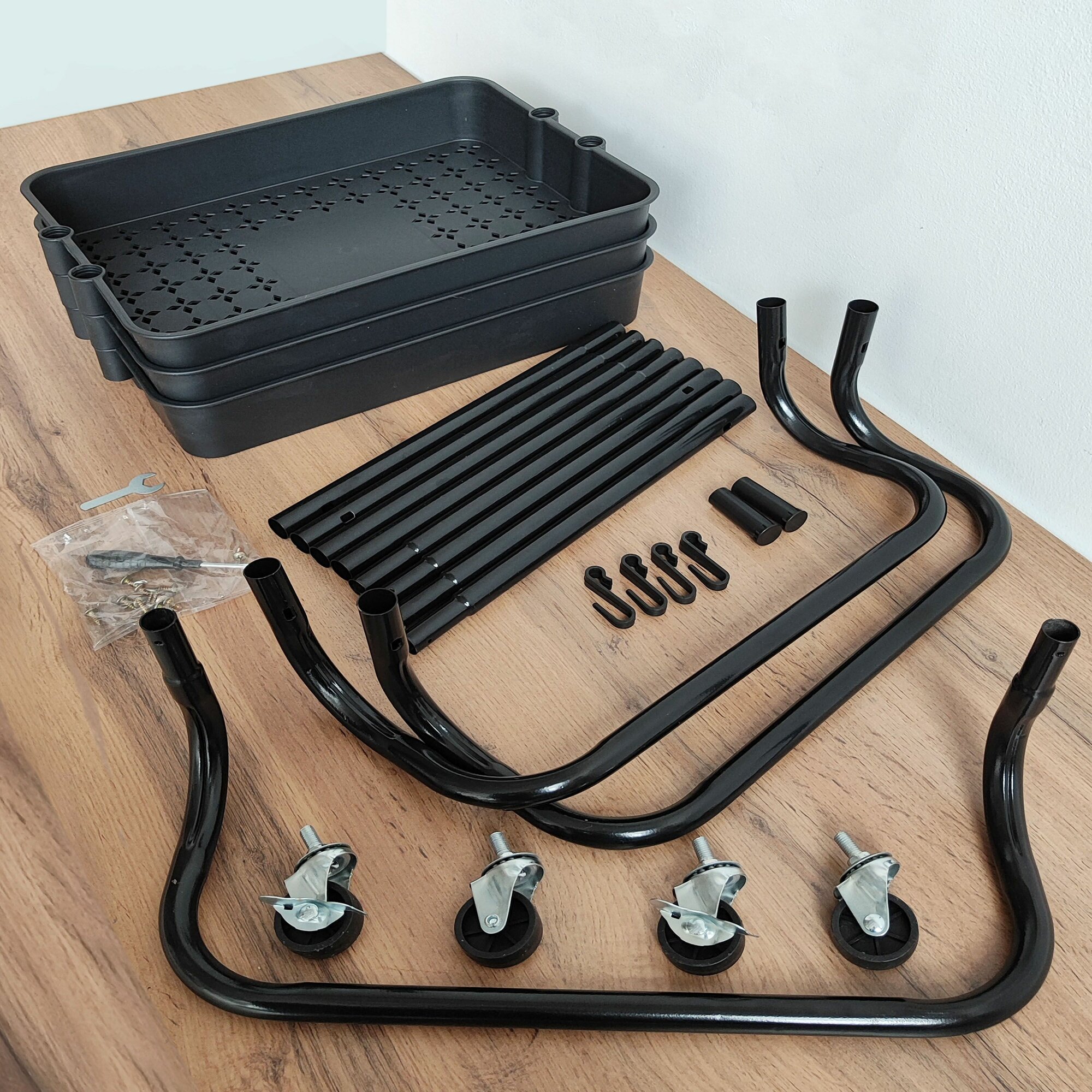 Этажерка, тележка 3-х ярусная на колесах, металл/пластик, черная информация: