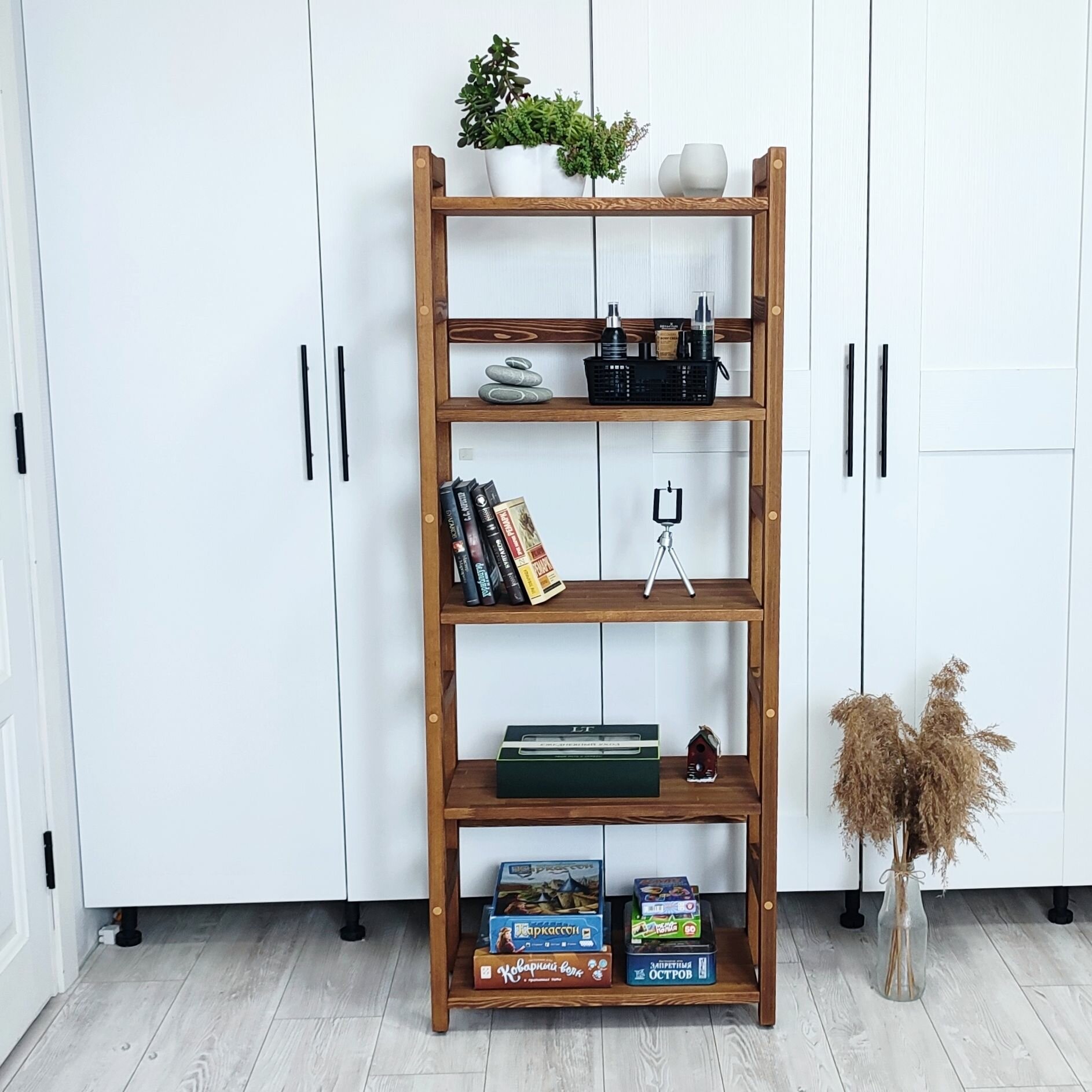 Отзывы на Деревянный стелаж из массива Лиственницы для книг, игрушек, кухни, ванной, гостиной- цвет Орех 150см*60см*30см