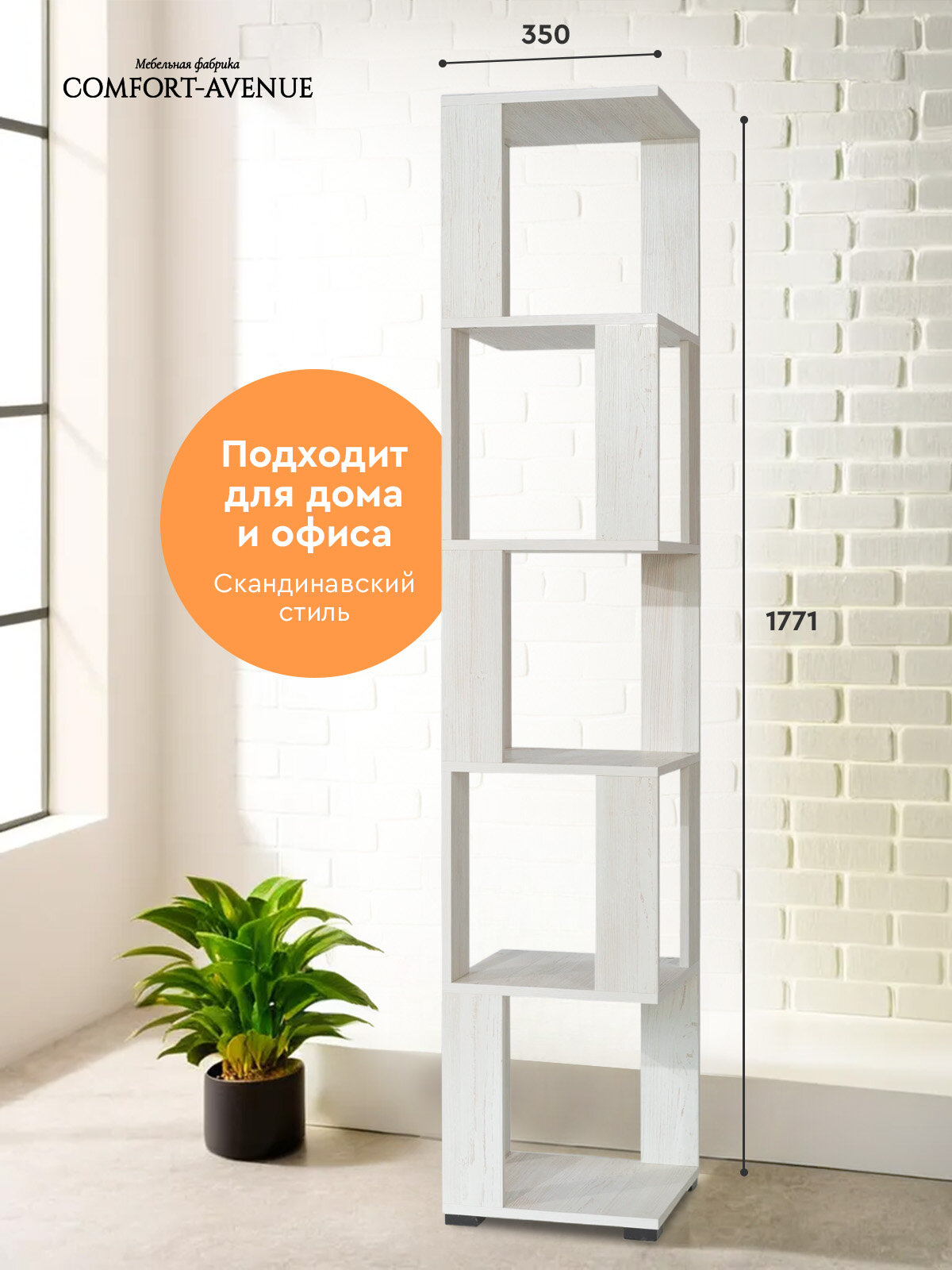 Стеллаж Comfort Avenue "Ватерфол", открытый, ЛДСП, 35x179x35 см, цвет Ясень Белый 4426 3 399 ₽