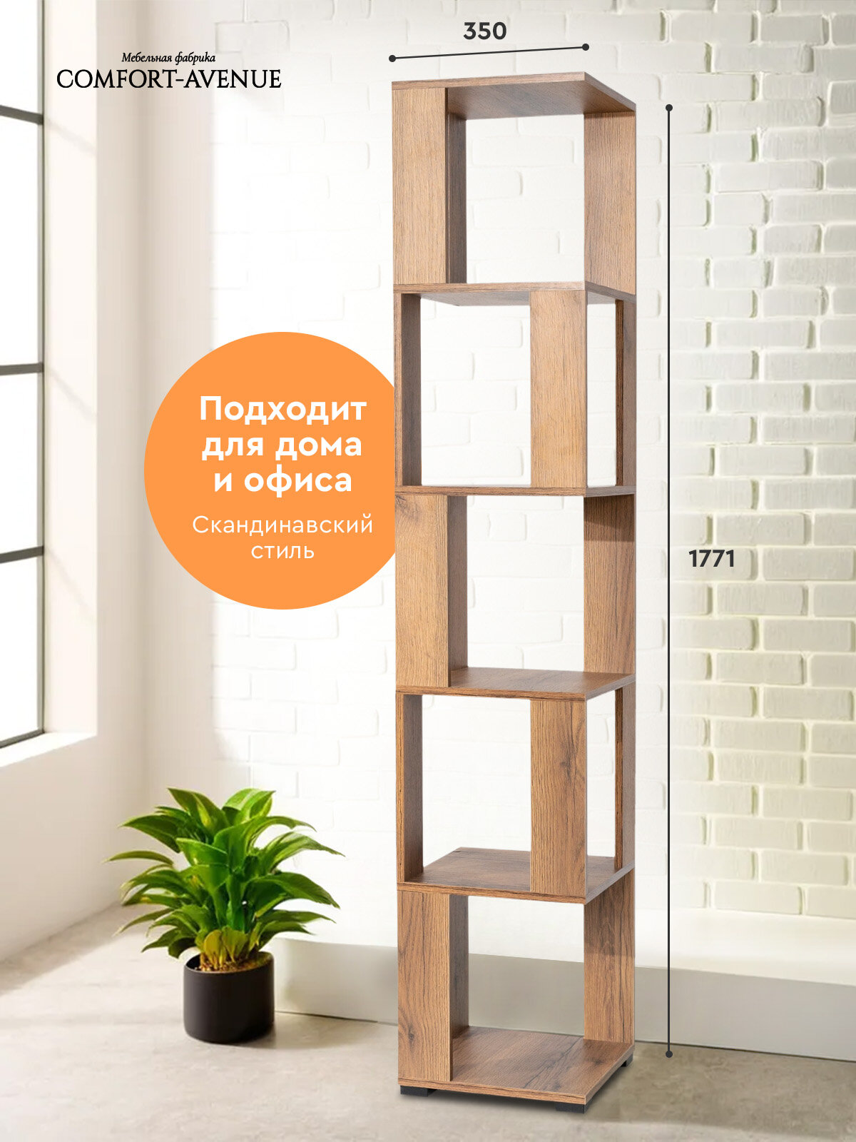 Отзывы на Стеллаж Comfort Avenue "Ватерфол", открытый, ЛДСП, 35x179x35 см, цвет Дуб Делано тёмный