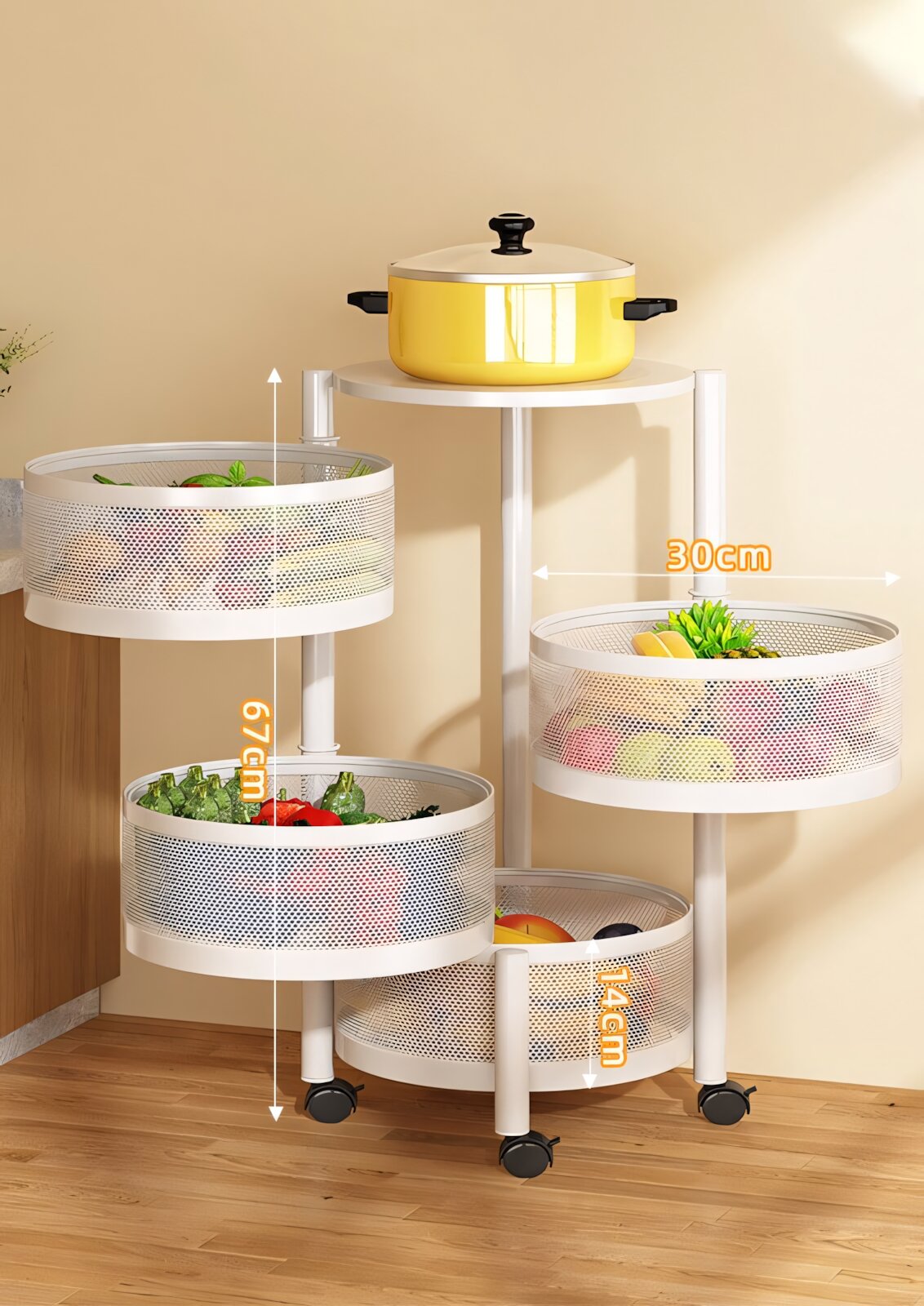 Этажерка круглая, на колесиках, высота 67 см, пятиуровневая, с поворотными полками, белый информация: