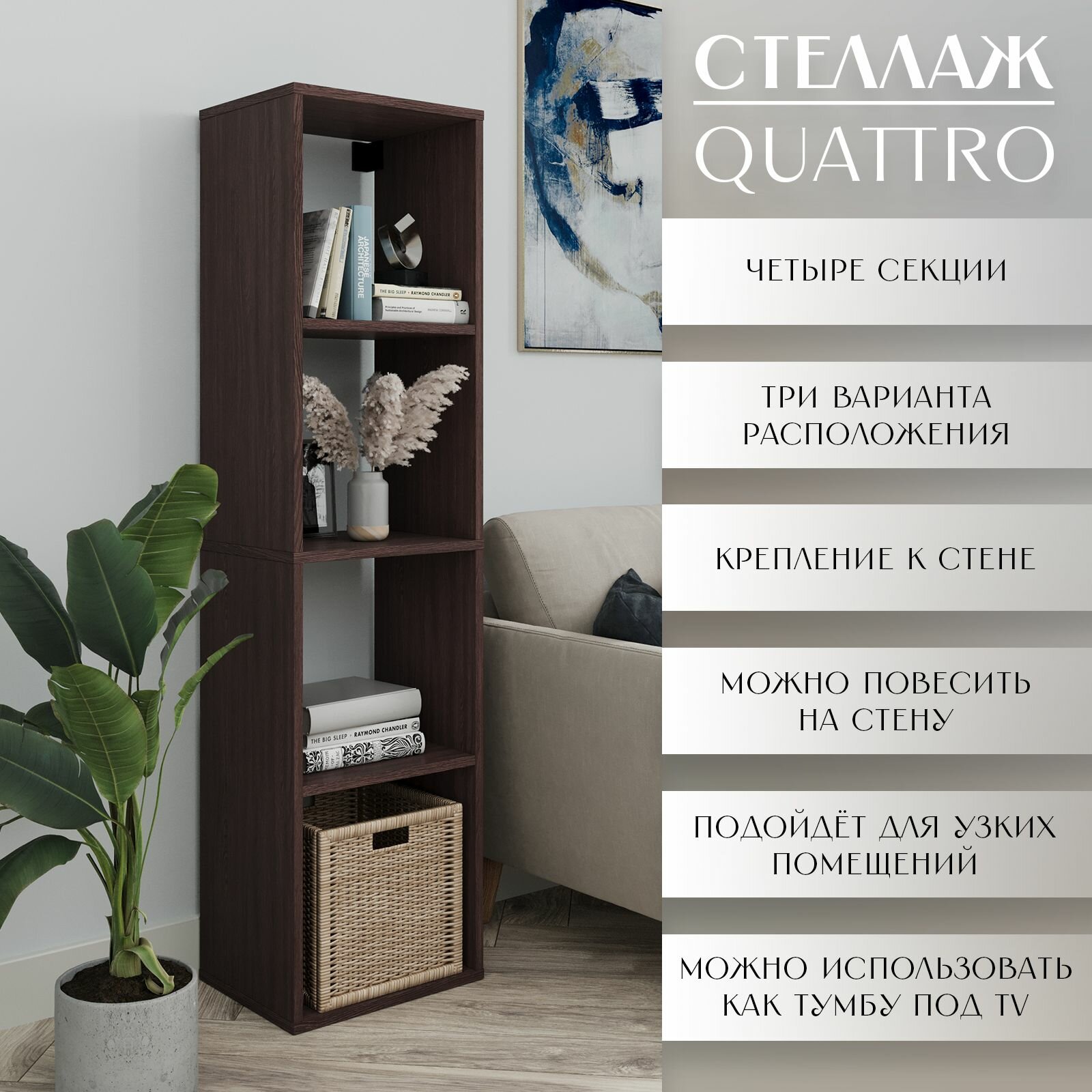 10 цен на Стеллаж деревянный для игрушек, для книг книжный Quattro 4 секции Венге