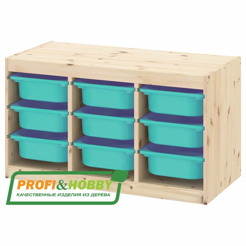 10 цен на Стеллаж труфаст горизонтальный тройной 93х44х52 см с бирюзовыми (9 шт) контейнерами