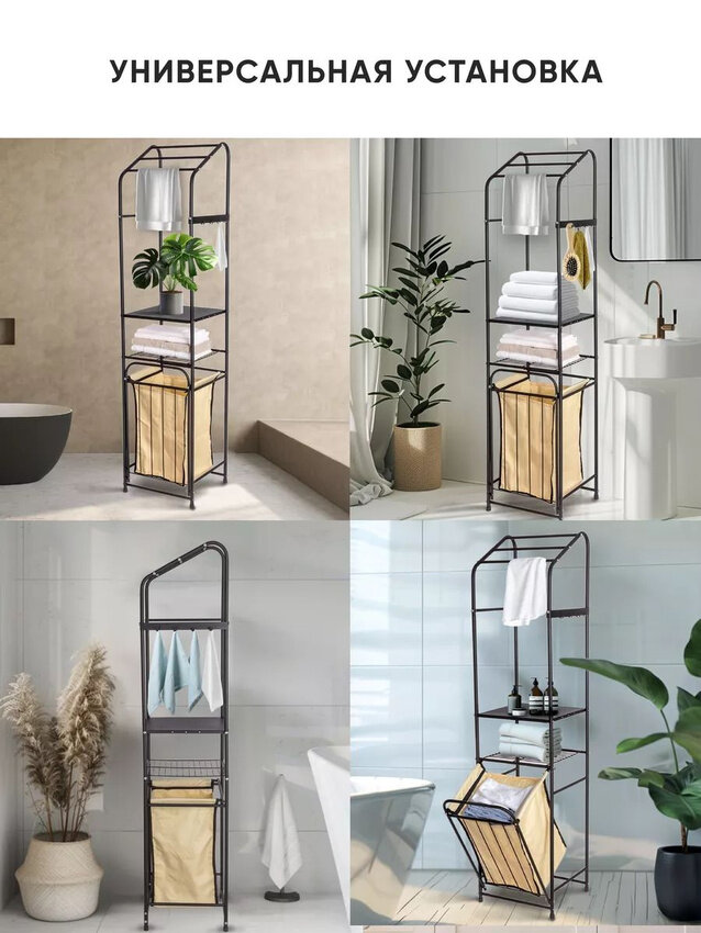 Стеллаж металлический с корзиной для белья 45 л SUPRA SC-L14002, 160х38х35 см информация:
