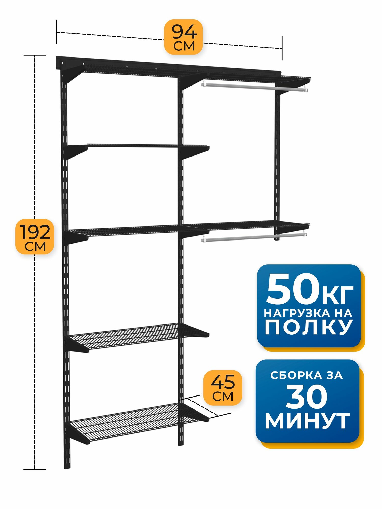 10 цен на Гардеробная система хранения Volazzi Home, №11 черный, 94х45х192см