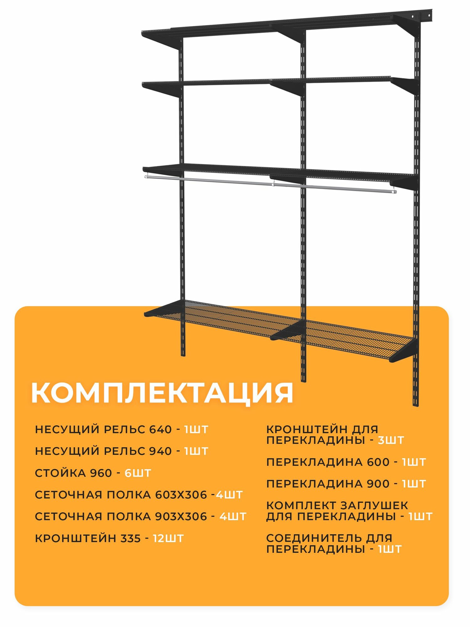 Гардеробная система хранения Volazzi Home, №21 черный, 144х45х100см 9 885 ₽