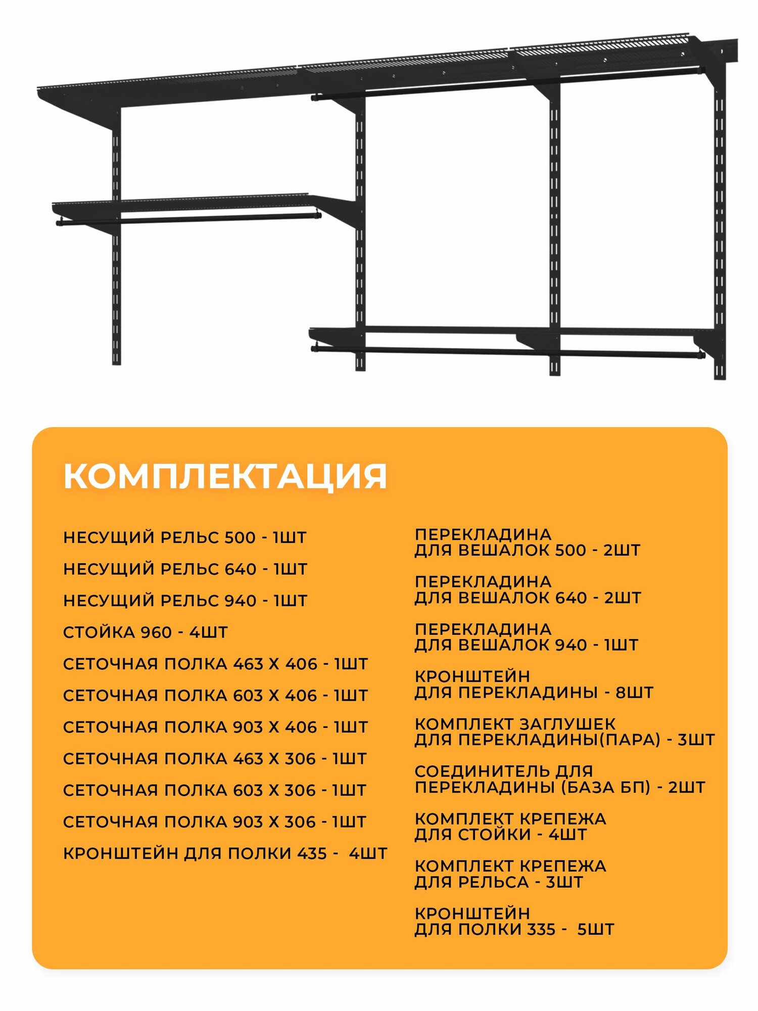 Гардеробная система хранения Volazzi Home, №23 черный, 282х35х45см 6 700 ₽