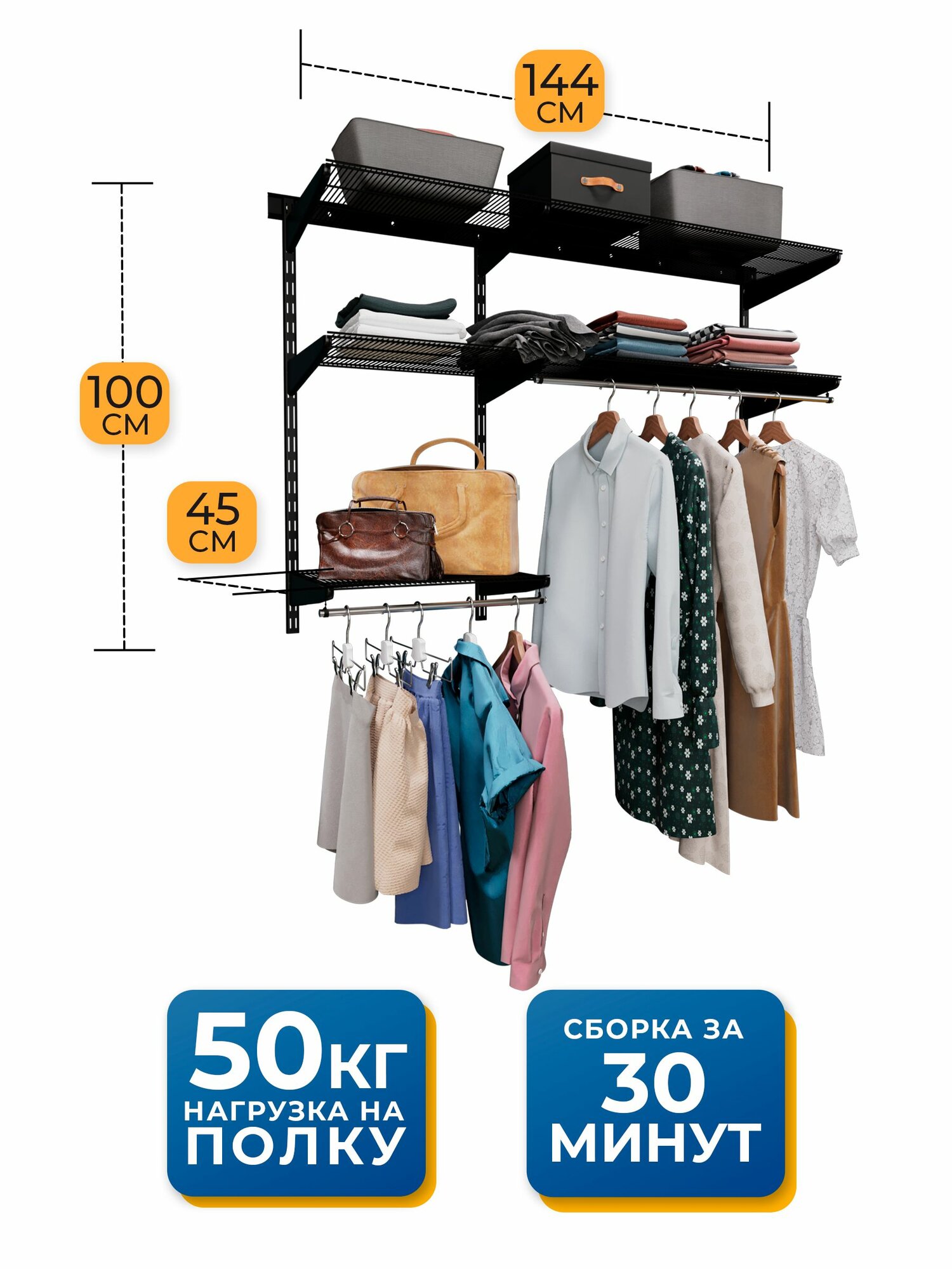 Отзывы на Гардеробная система хранения Volazzi Home, №21 черный, 144х45х100см
