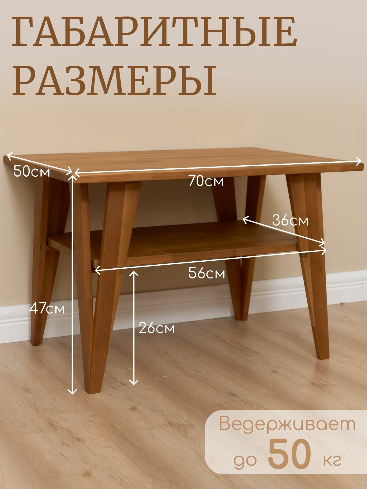 Журнальный столик деревянный прямоугольный приставной для гостиной и зала с полкой информация: