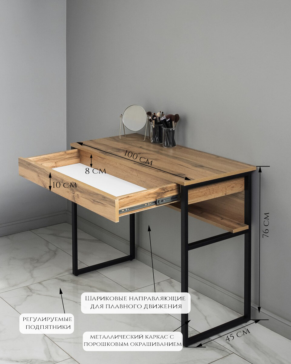 Стол туалетный с ящиком макияжный LOFT-100 на металлических ножках (вотан) информация: