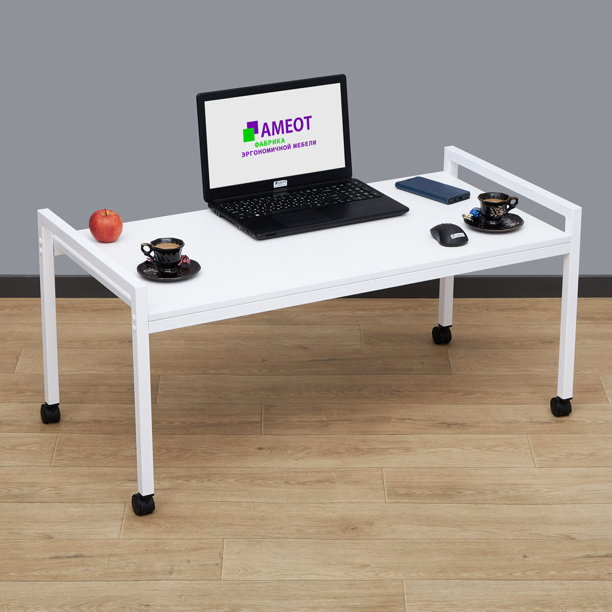 Журнальный стол на металлокаркасе Лимнак 8WW ш104/г52/в44 белый на колесиках информация: