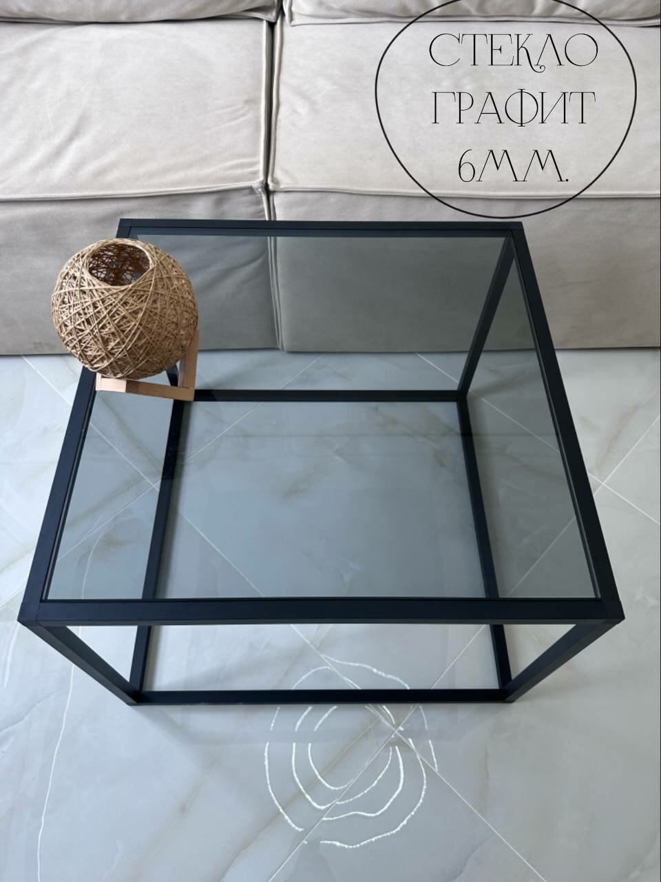Журнальный стеклянный столик "Невесомость" Графит 60x60 информация: