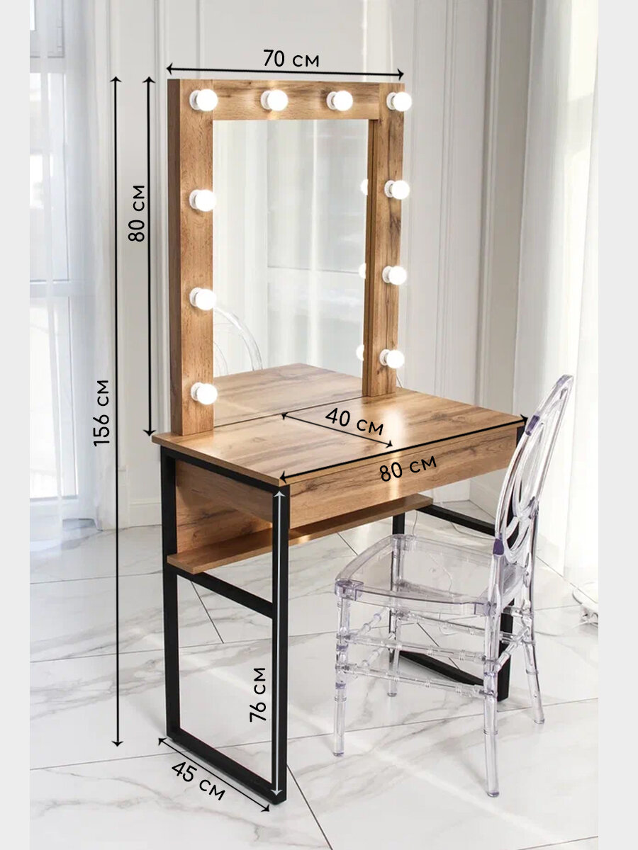 Отзывы на Туалетный столик LOFT на металлокаркасе с зеркалом в рамке (ДУБ вотан)