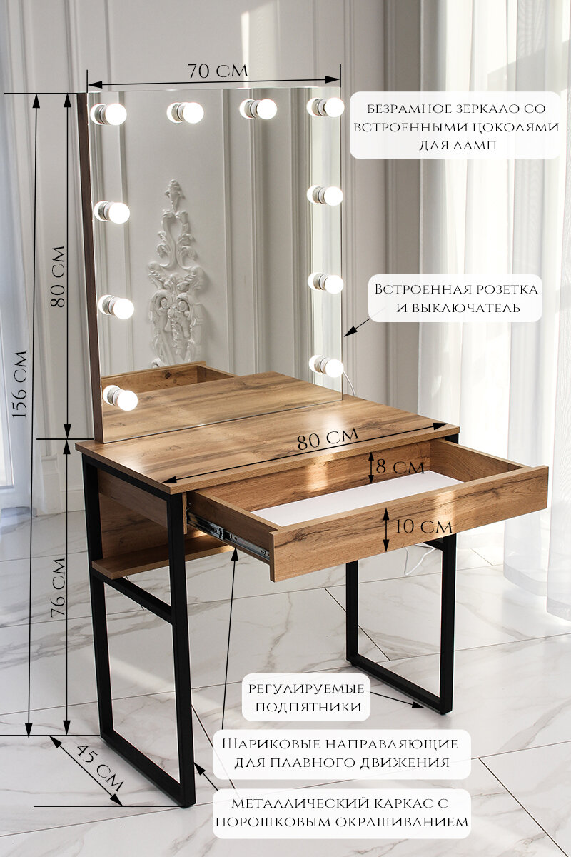 Отзывы на Туалетный столик LOFT на металлокаркасе с безрамным зеркалом (ДУБ вотан)