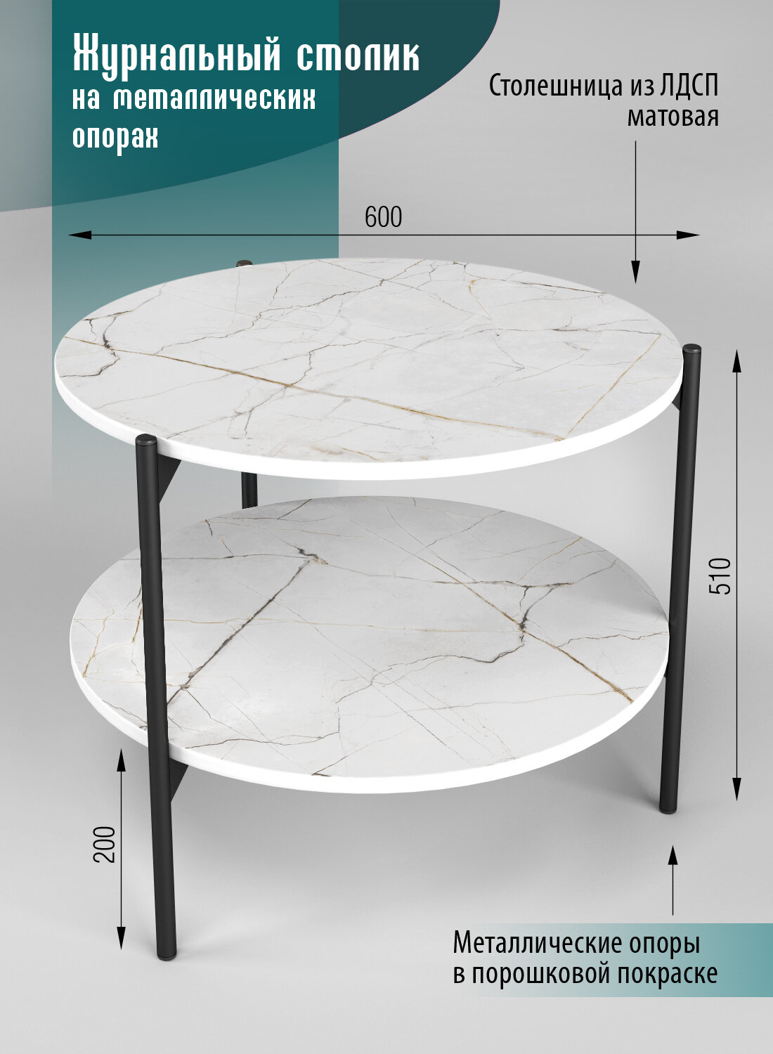 Столик журнальный DiX HOME "Шафран", лофт, две столешницы, металл, ЛДСП 4 230 ₽