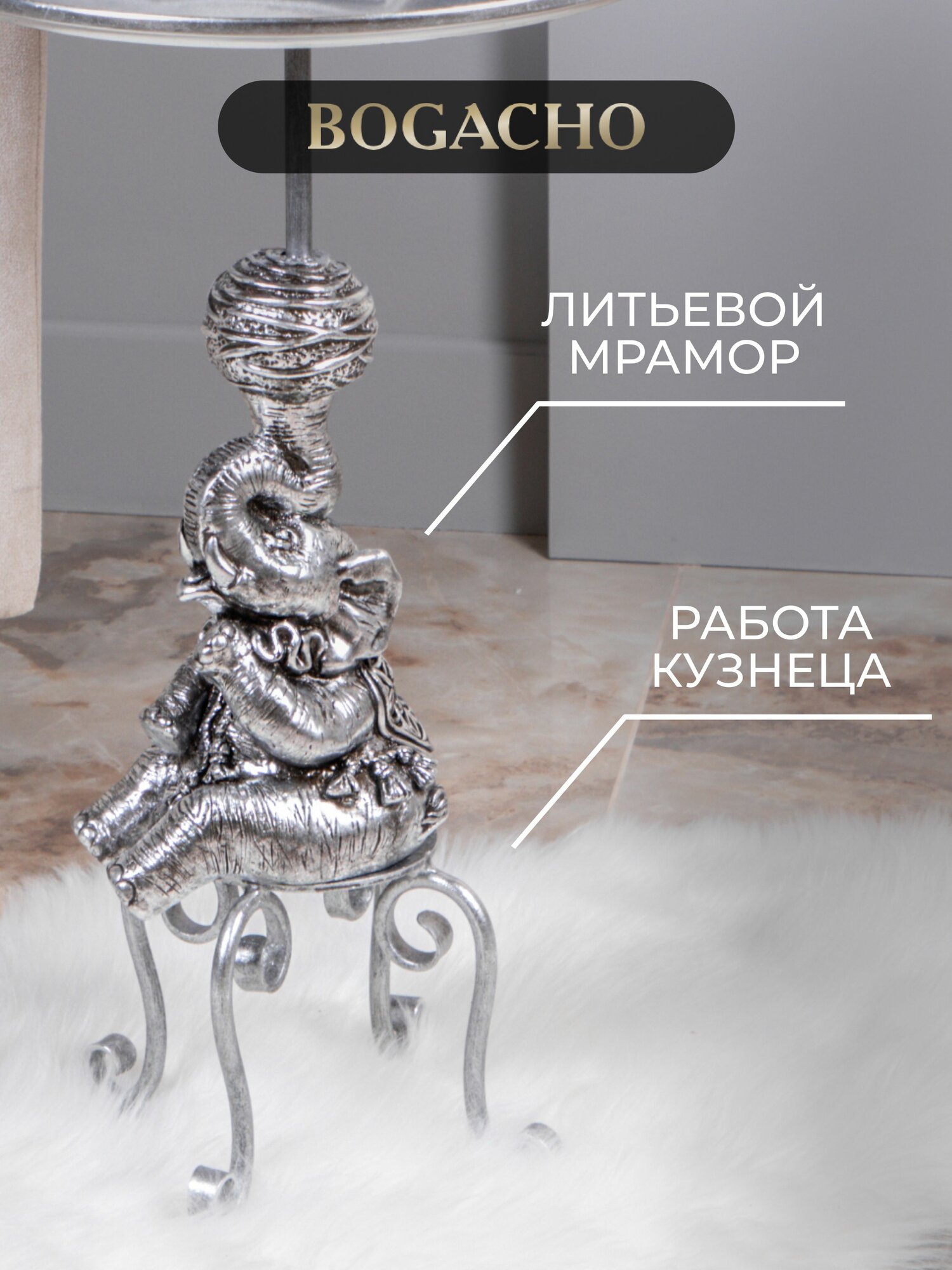 Отзывы на Кофейный круглый столик Bogacho Дю Солей с деревянной столешницей и фигурной мраморной ножкой в виде слона