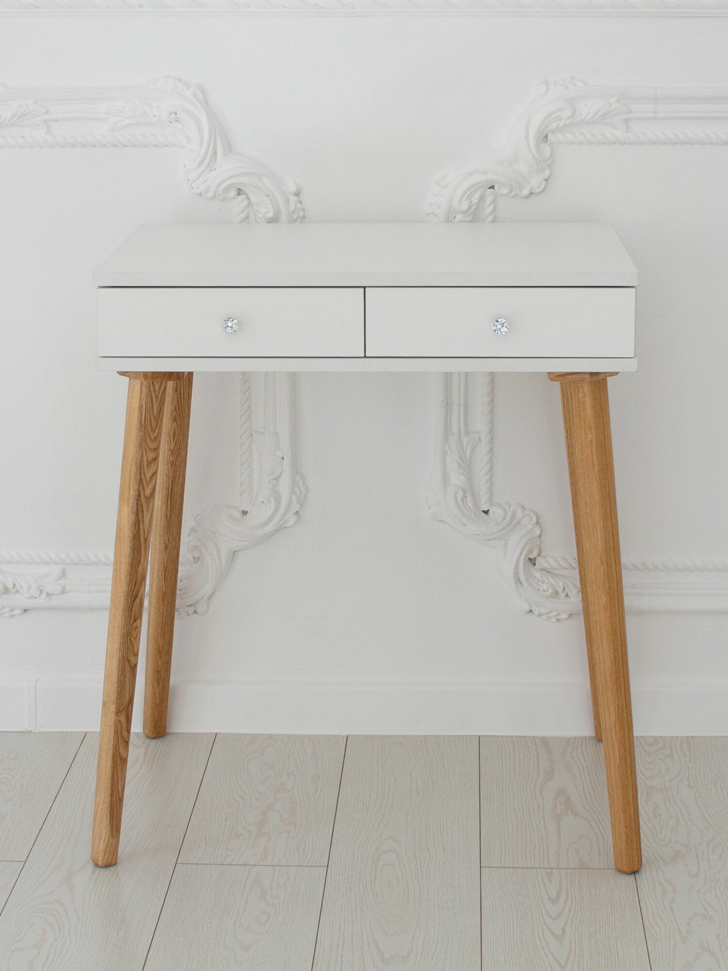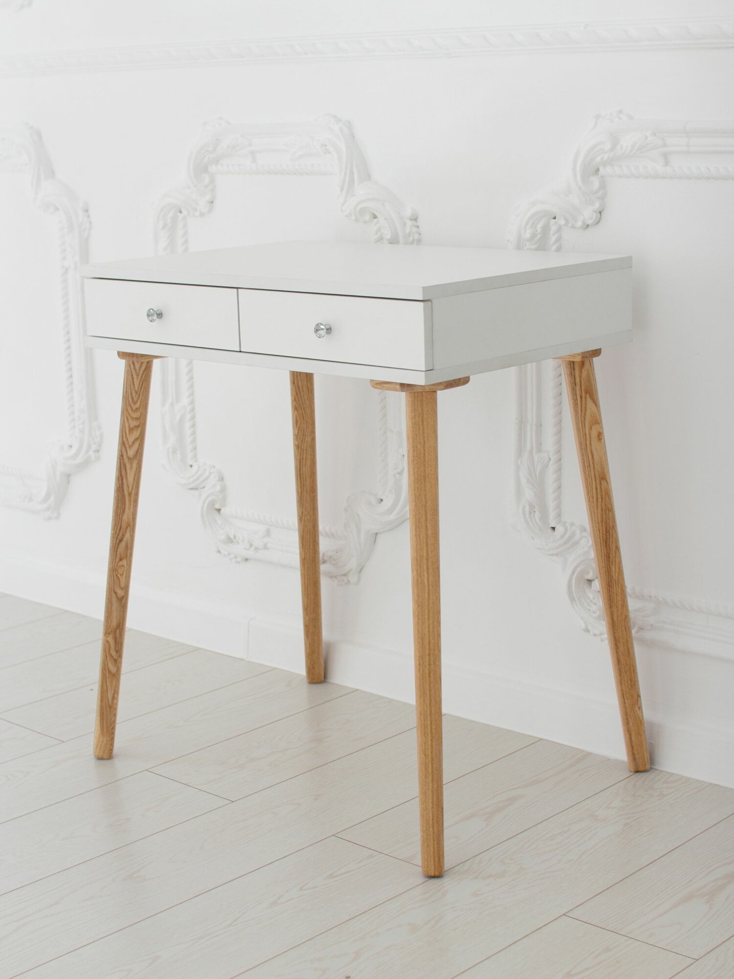 Отзывы на Туалетный столик с ящиком White на ножках из массива в цвете прозрачное масло