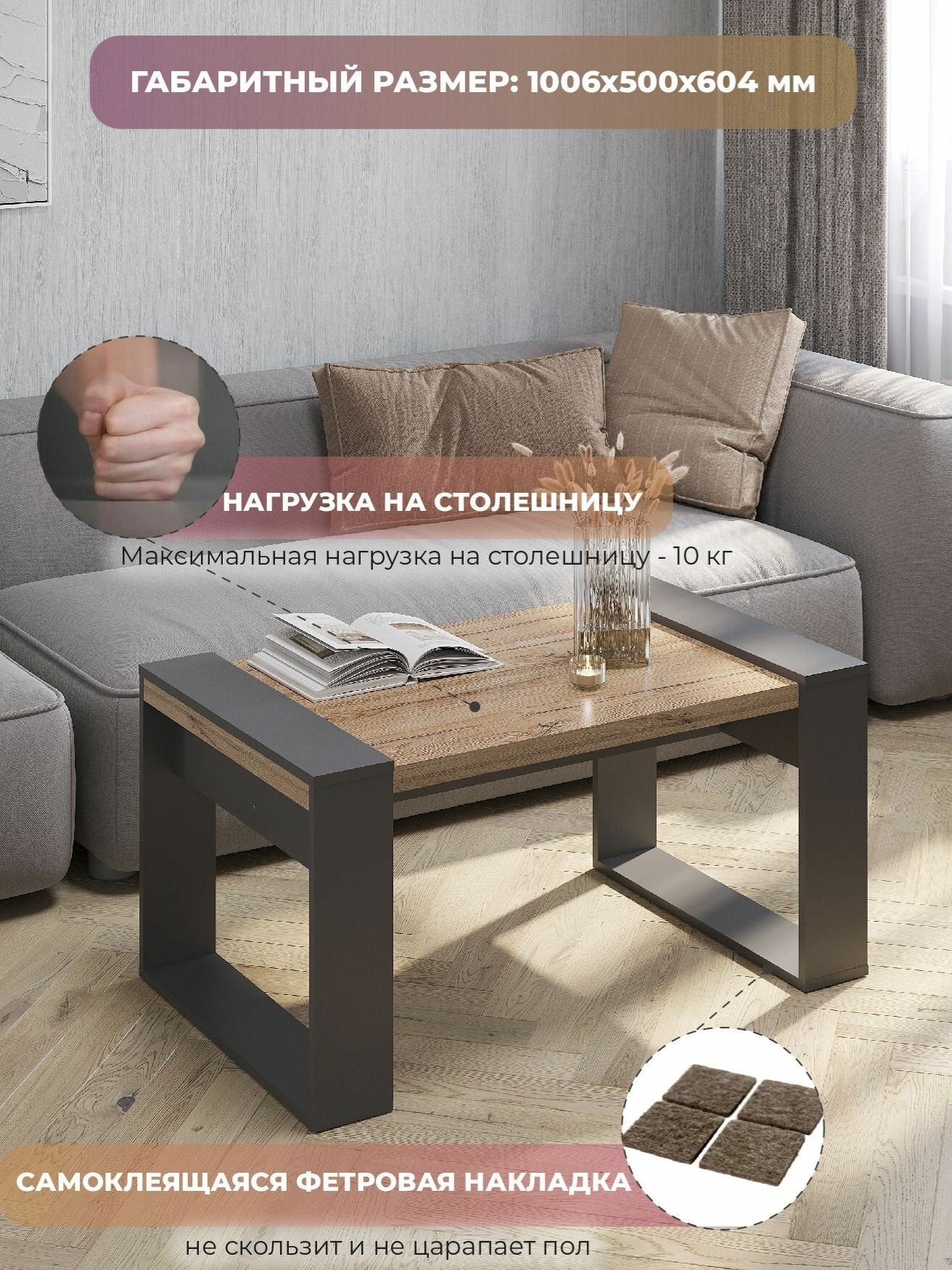 Журнальный стол Сигма / кофейный стол / в гостиную, спальню, офис. Черный Оникс.