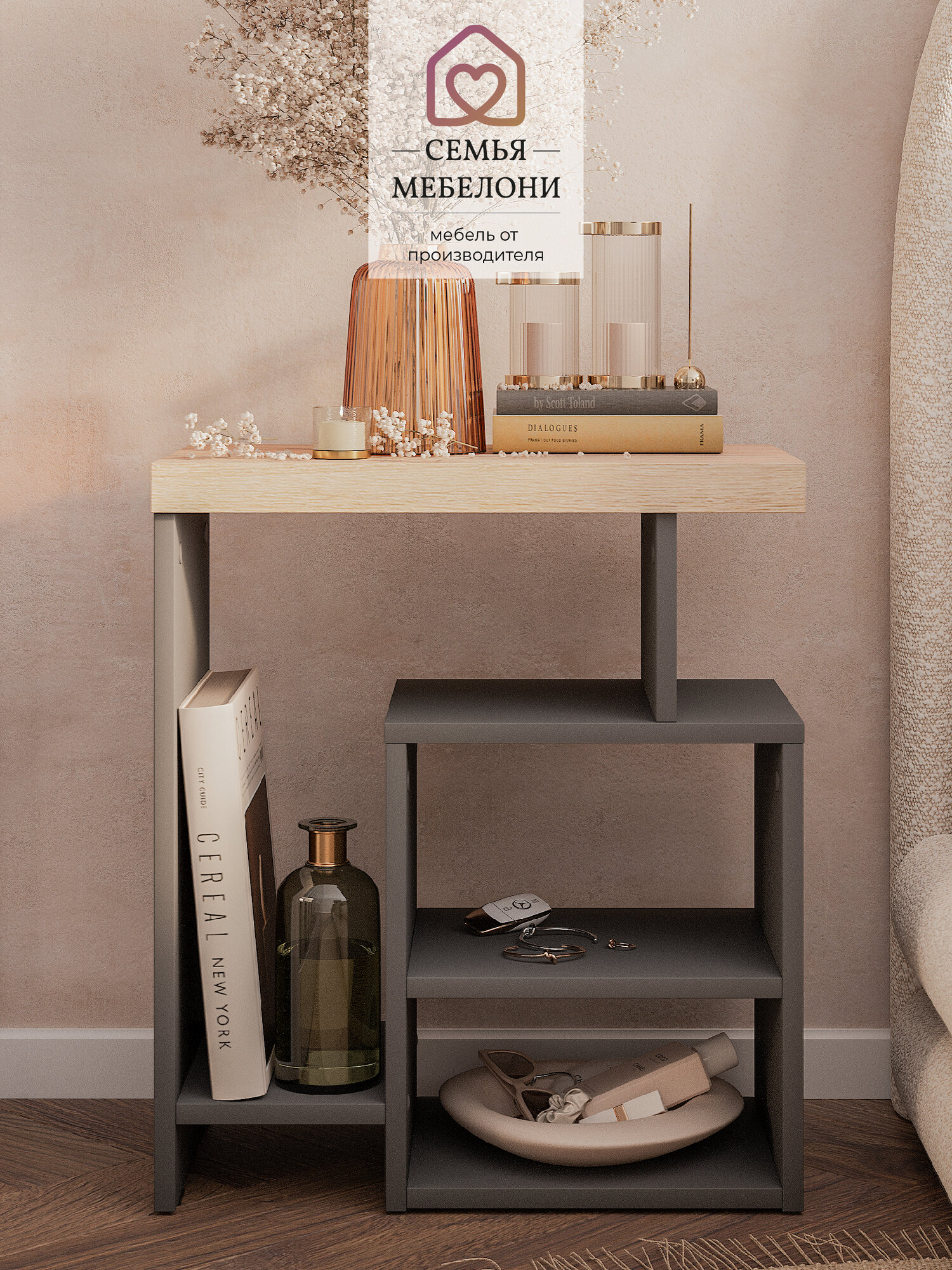 Есэндвич Loft Депо Туалетный столик с зеркалом 80х170х40 см, (Дуб сонома/Белый), с полками, с ящиком