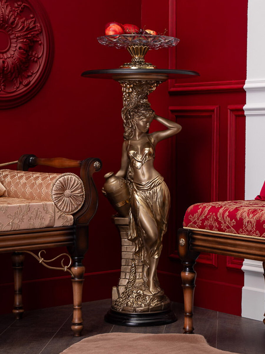 Декоративная подставка BOGACHO Девушка с кувшином бронзовая со столешницей диаметром 45 сантиметров коричневой информация: