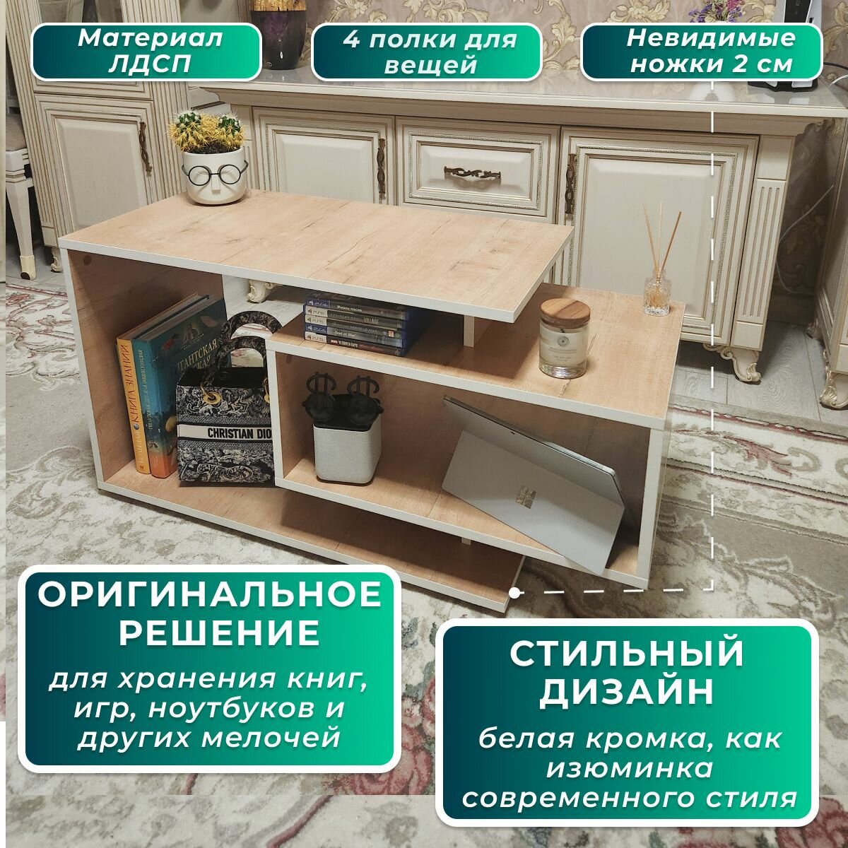 Журнальный стол Smart, белый/дуб, столик прикроватный, деревянный лофт, в спальню, в гостиную 3 521 ₽