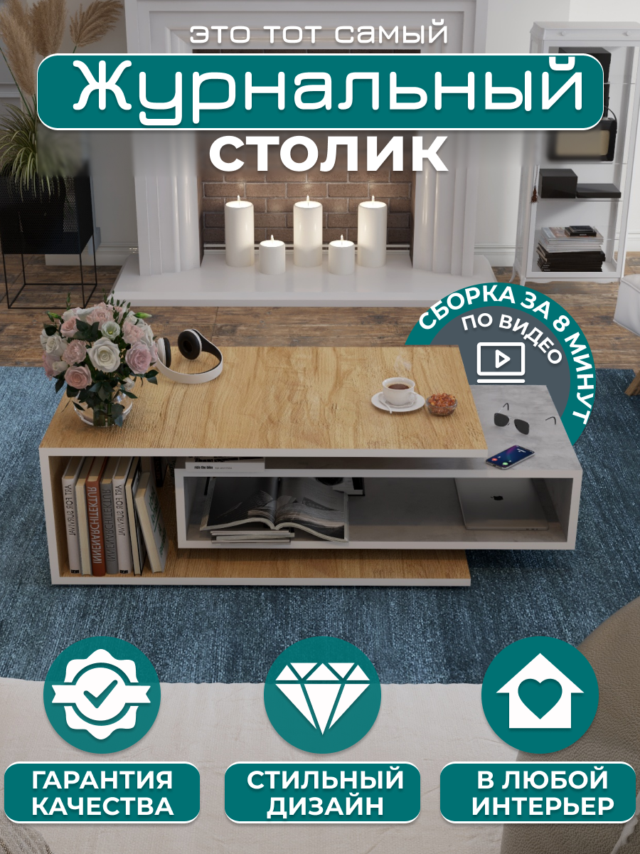 10 цен на Журнальный стол Future 2, дуб/бетон, столик прикроватный, деревянный лофт, в спальню, в гостиную