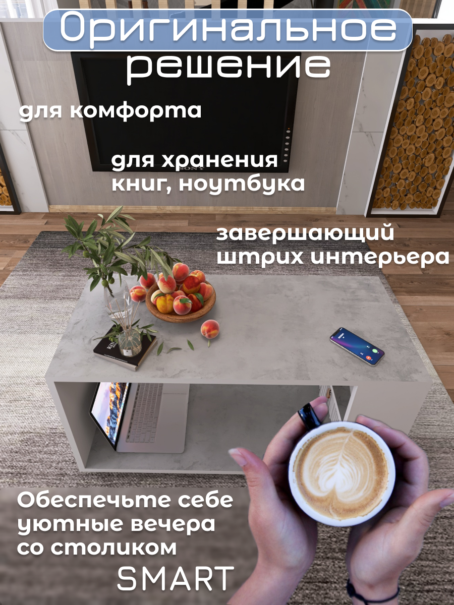 Журнальный стол Smart, бетон/белый, столик прикроватный, деревянный лофт, в спальню, в гостиную информация: