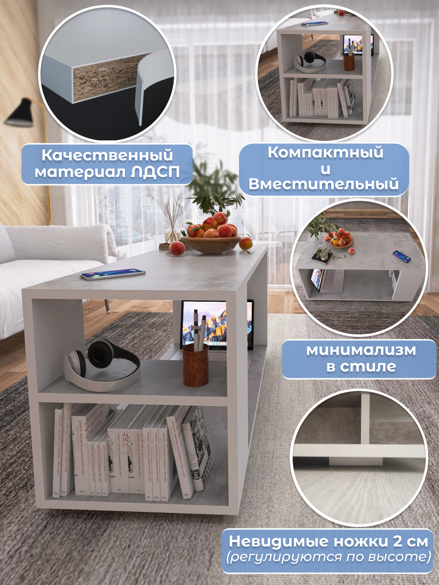 10 цен на Журнальный стол Smart, бетон/белый, столик прикроватный, деревянный лофт, в спальню, в гостиную