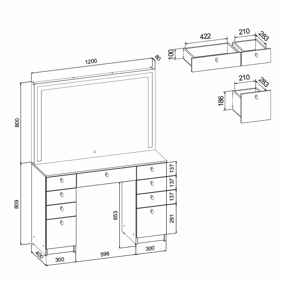 Туалетный столик GRIMSTOL 4Д120-БШ, гримёрное зеркало, LED-подсветка, белый информация: