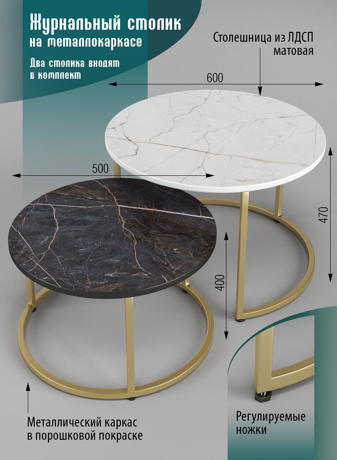 Комплект журнальных столов 2 шт. Разборные. Белый мрамор, черный мрамор/золото информация: