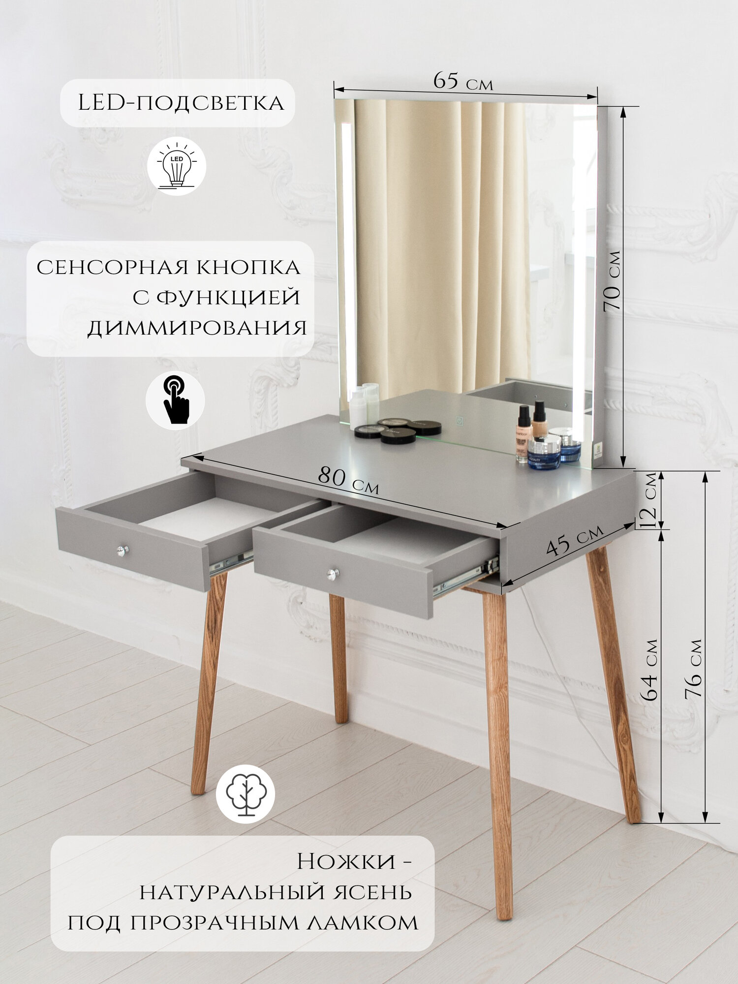 Отзывы на Макияжный столик с ящиком, зеркало с Led подсветкой Feba 80*45*146