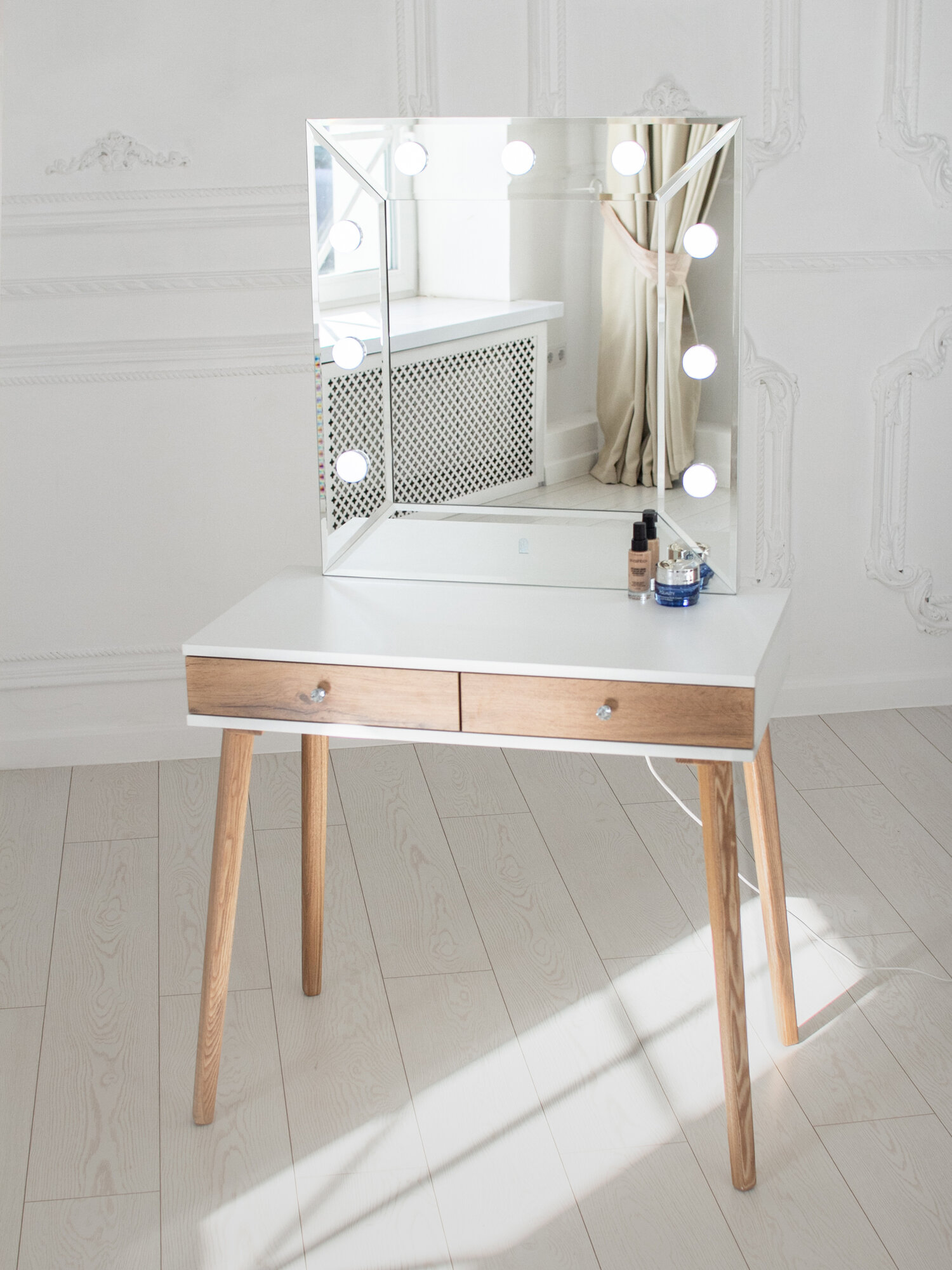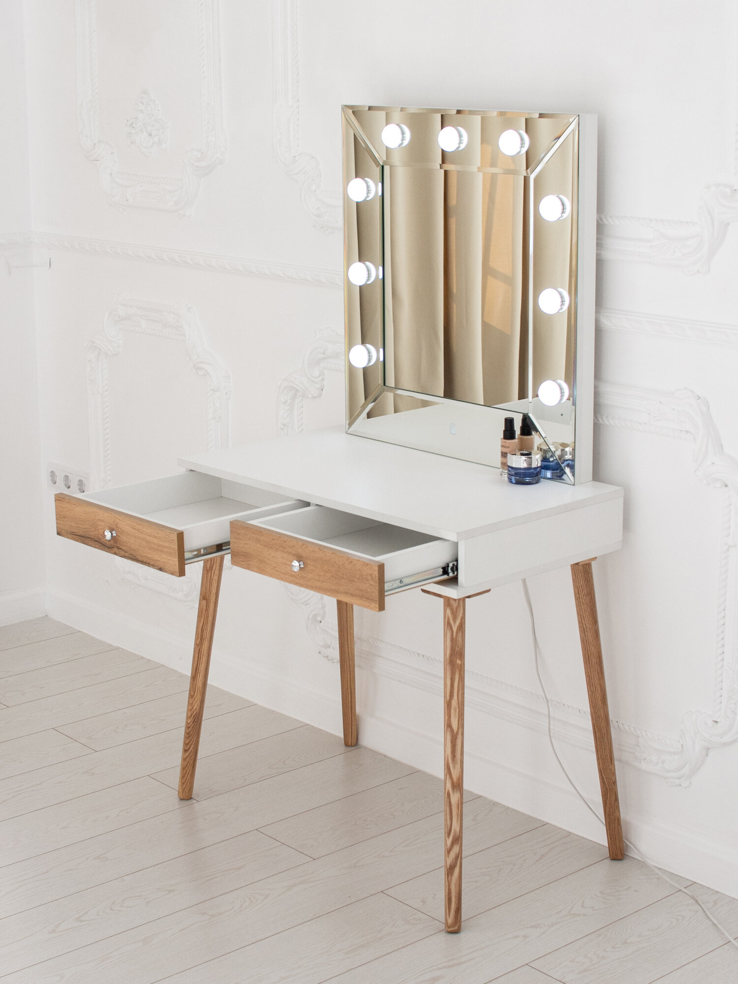 Гримерный столик с 2-я ящиками и зеркалом с Led подсветкой(White+Votan(белый+вотан) 21 500 ₽