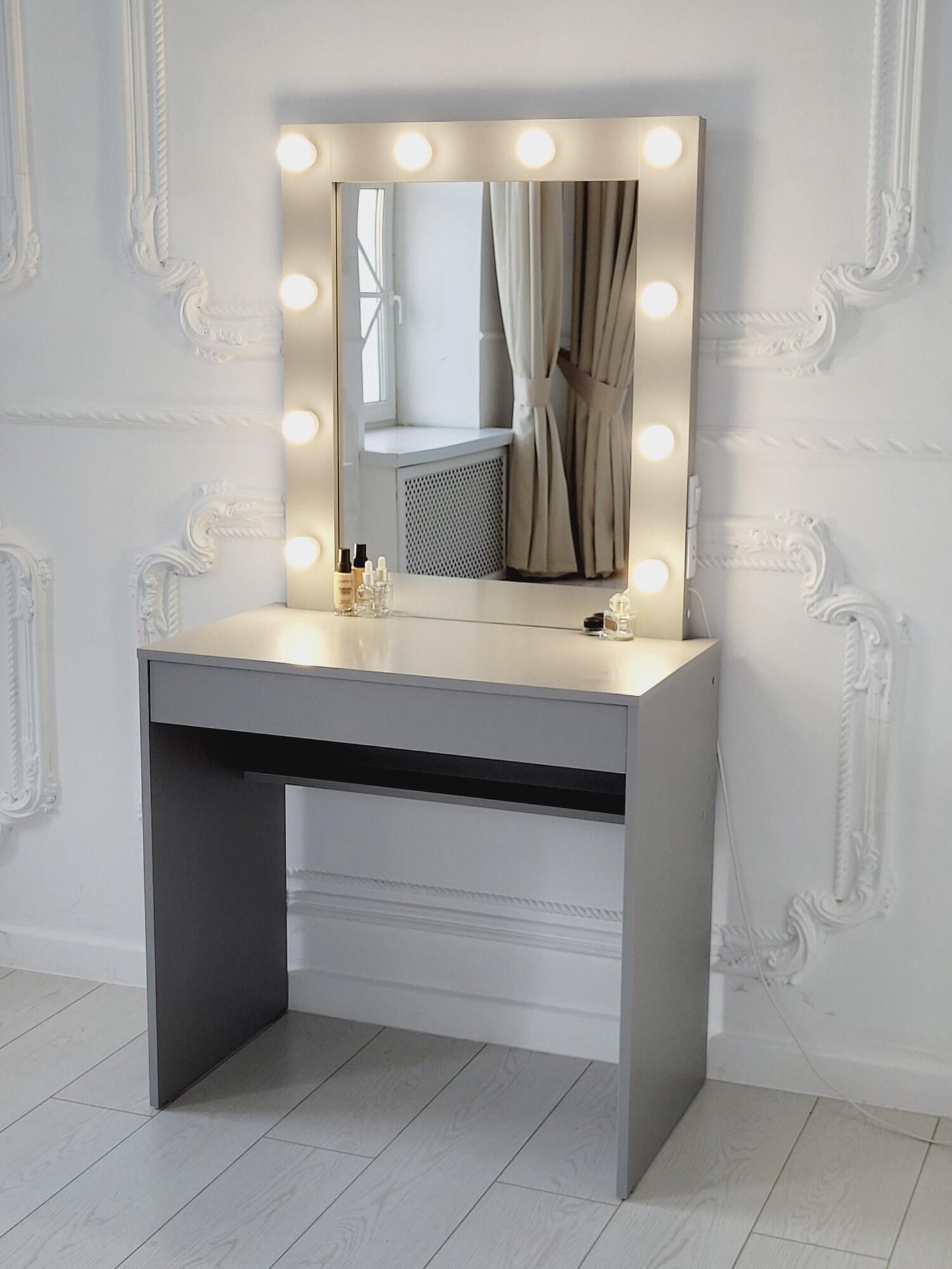 10 цен на Туалетный столик с ящиком и подсветкой , зеркало в раме феба