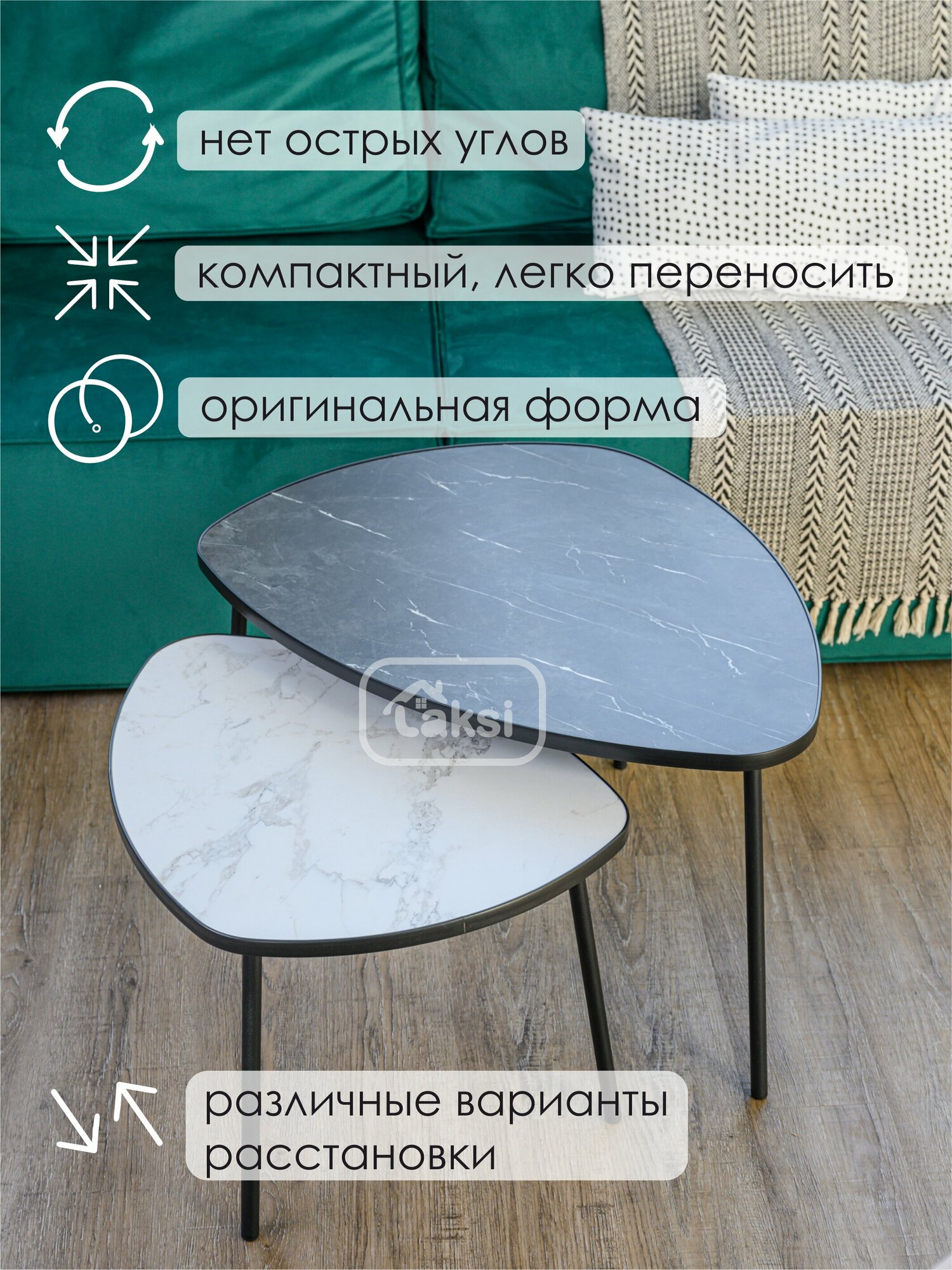 Отзывы на Комплект журнальных столиков LAKSI рута черный матовый/сабия/креатель
