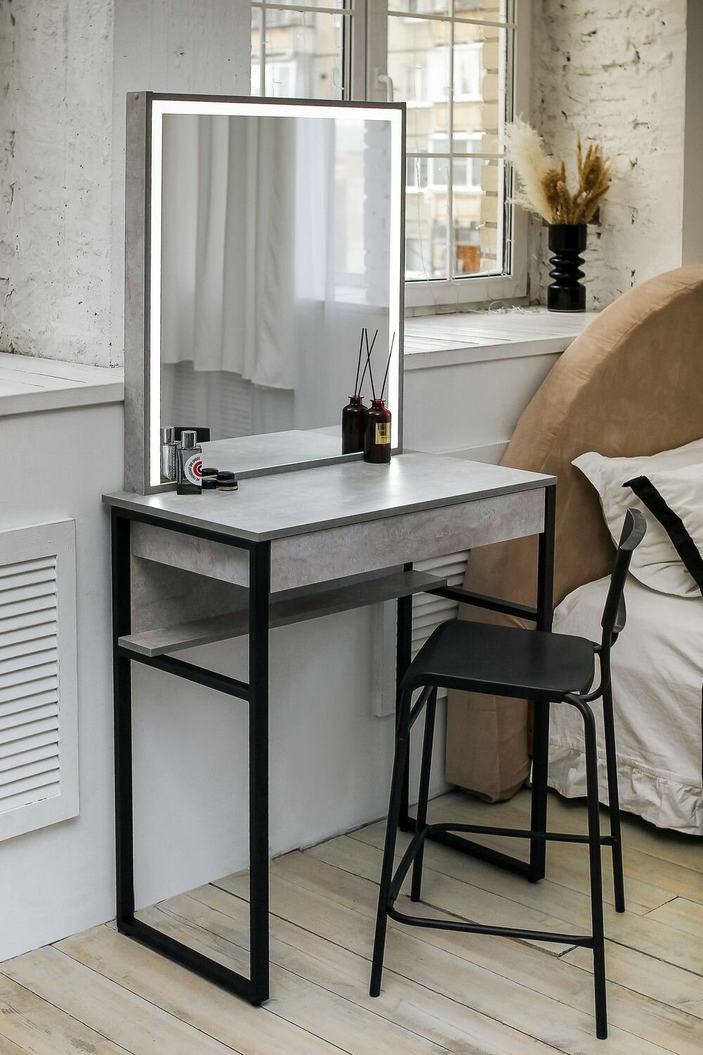 Высокая гримерная станция с ящиком LOFT зеркало в раме цемент 18 000 ₽