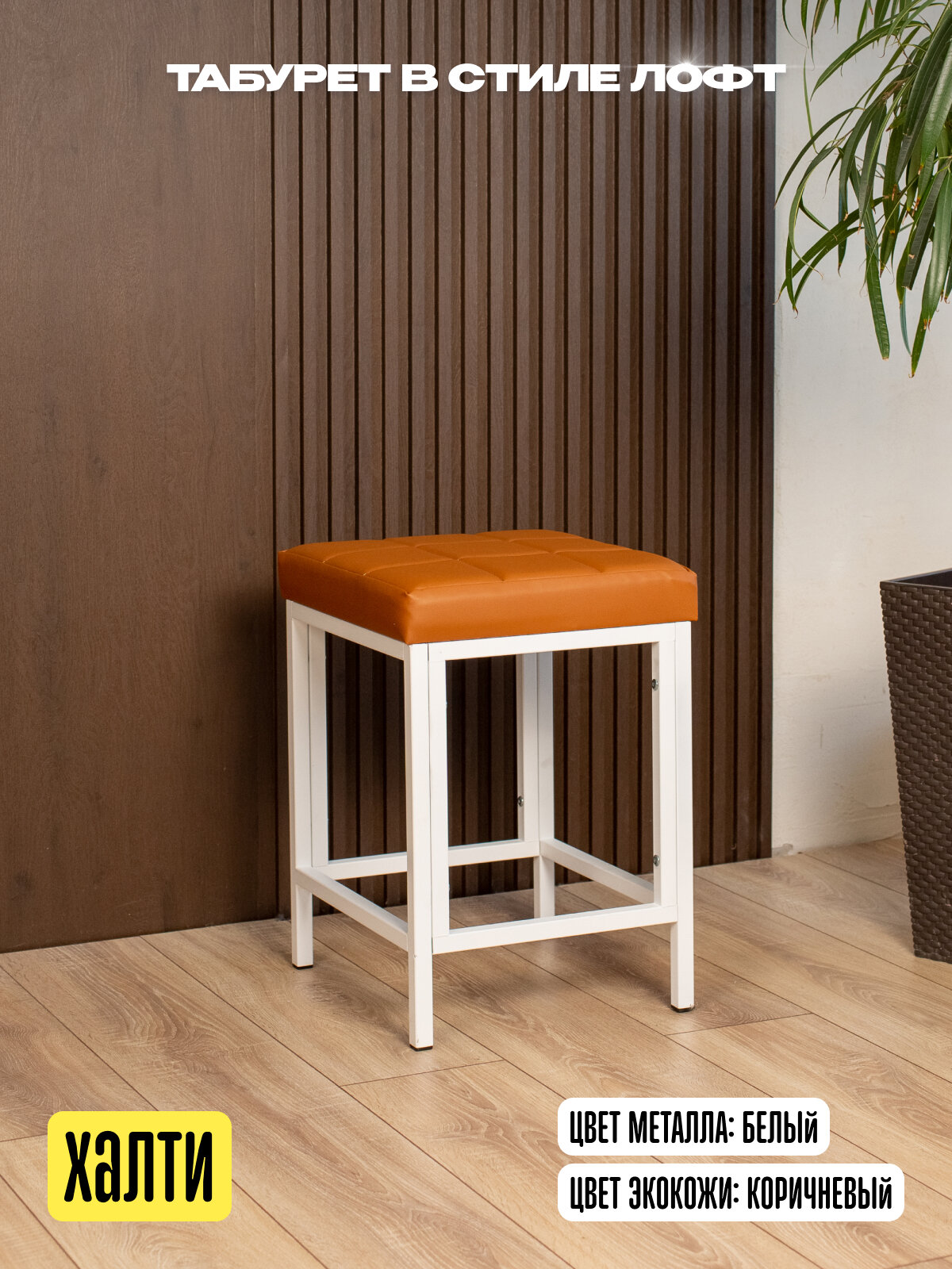 Характиристики этого товара не найдены!Отзывы на Стул табурет кухонный металлический в стиле лофт экокожа Халти белый/коричневый
