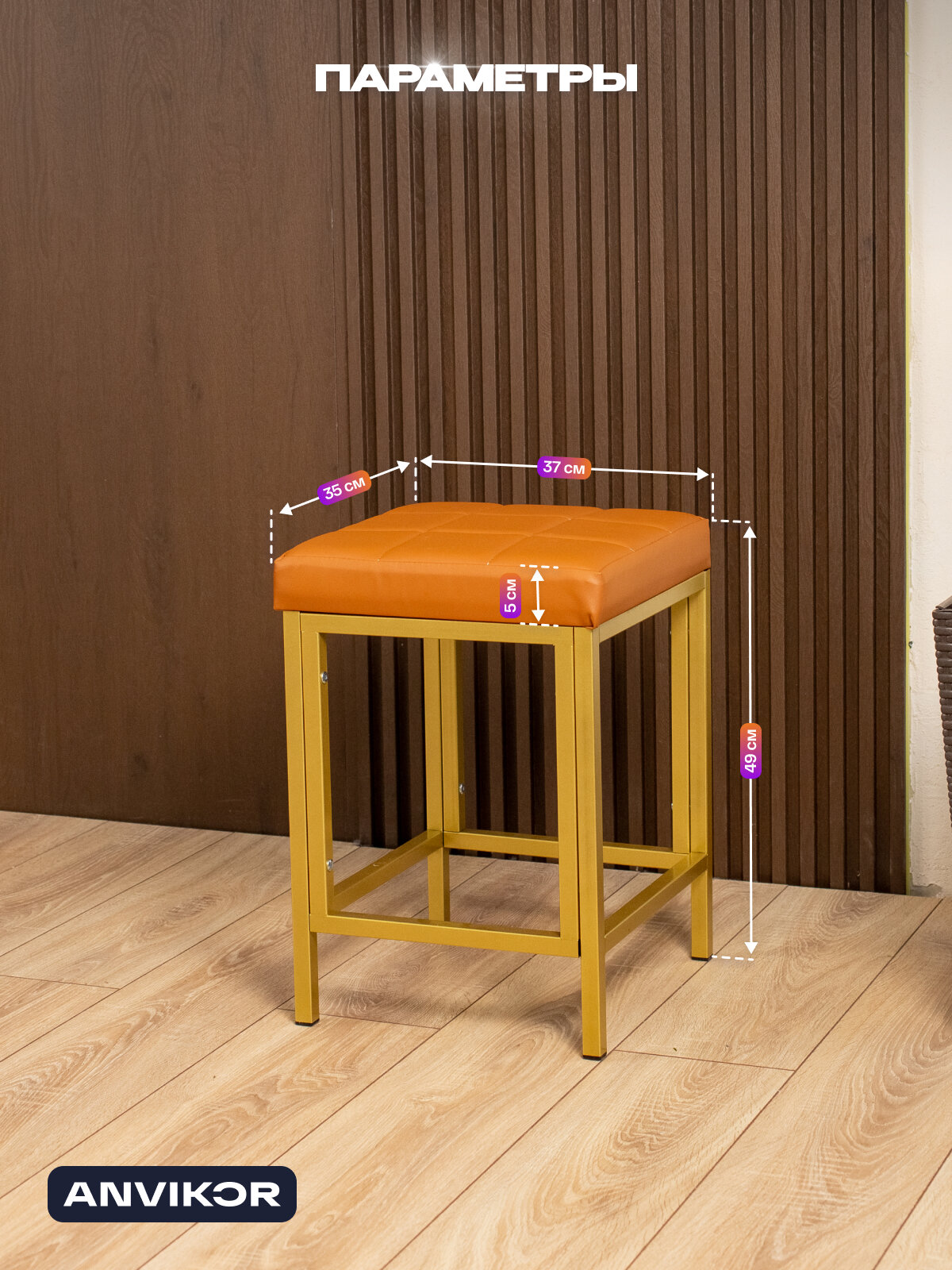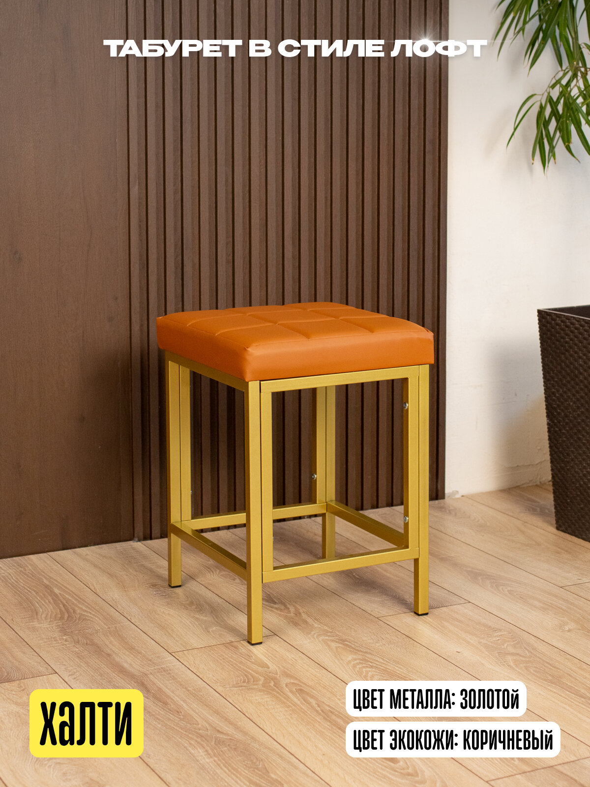 Характиристики этого товара не найдены!Отзывы на Стул табурет кухонный металлический в стиле лофт экокожа Халти золотой/коричневый