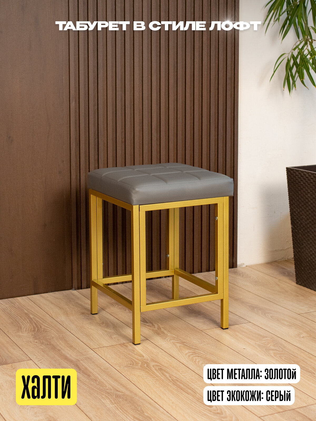Отзывы на Стул табурет кухонный металлический в стиле лофт экокожа Халти золотой/серый
