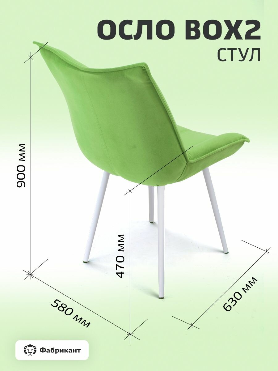 Стул для кухни мягкий Фабрикант ОСЛО велюр антикоготь зеленый, белые ножки информация: