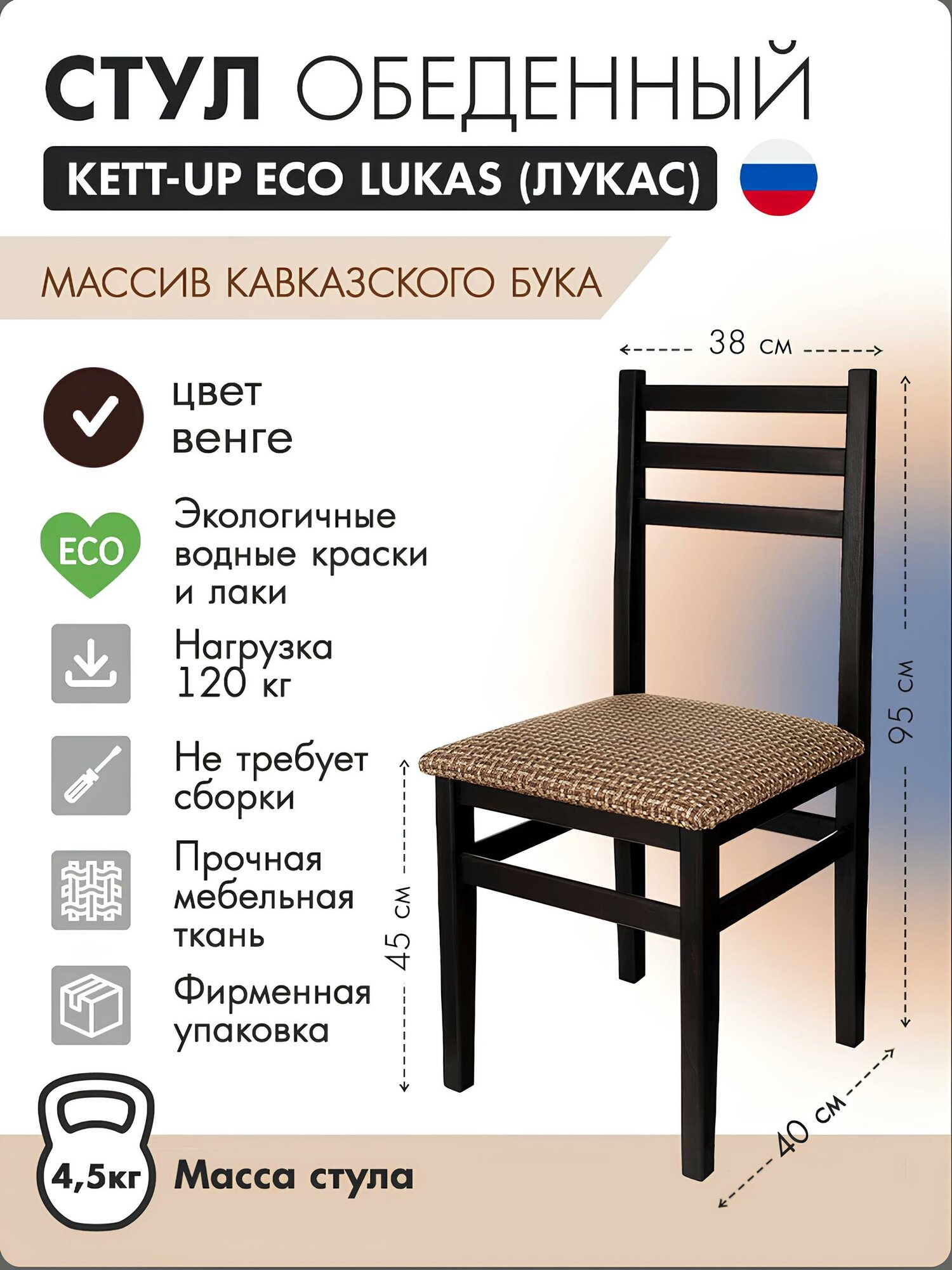 Стул обеденный KETT-UP ECO LUKAS (лукас) KU270, цвет венге, массив бука, 1 штука информация: