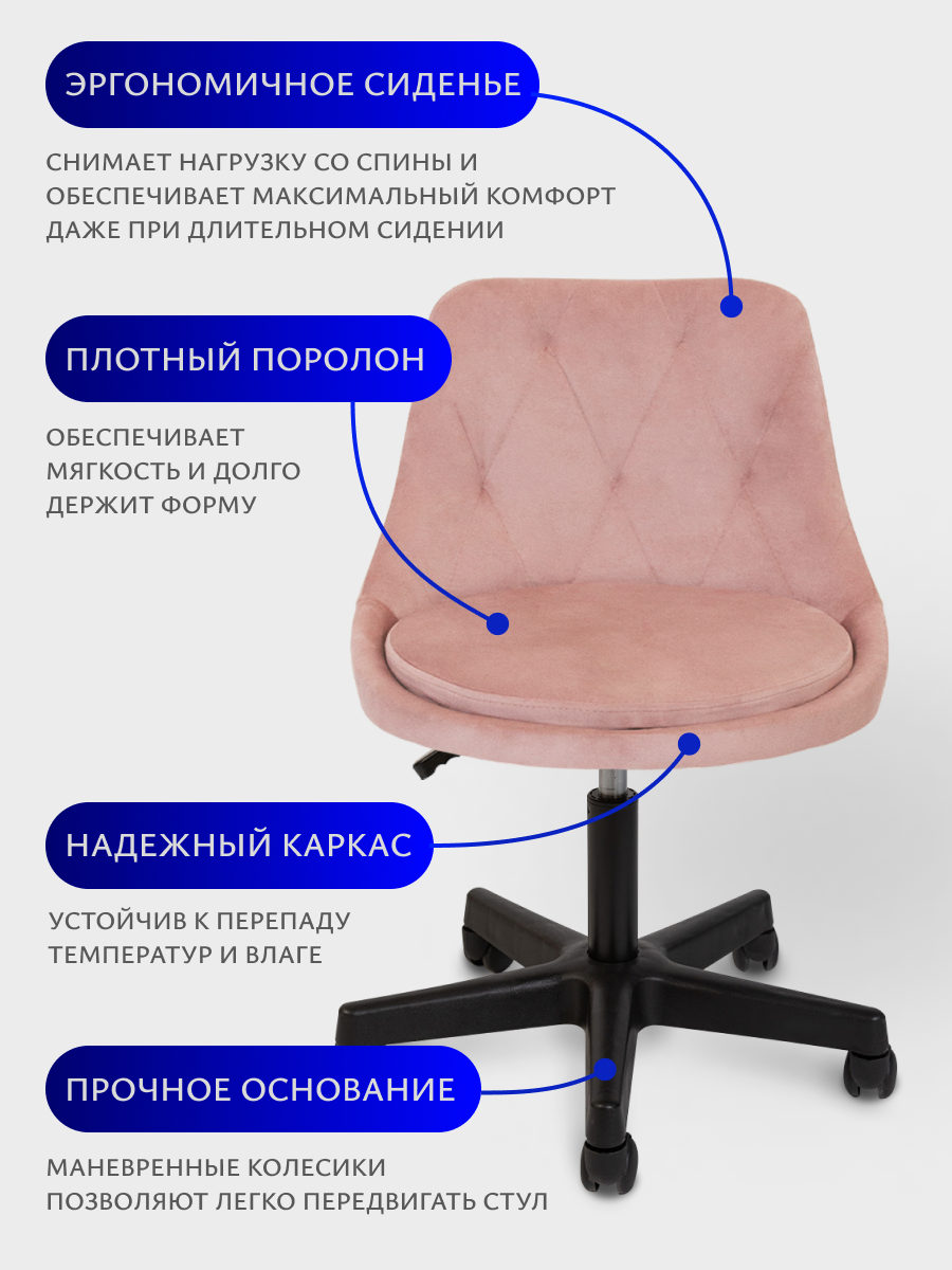 Характиристики этого товара не найдены!Отзывы на Стул для дома, офиса, мастера Ромб, пластиковое пятилучье, пыльно- розовый