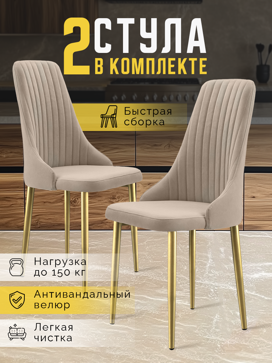 10 цен на Стулья для кухни 2 шт Кора мягкие, с высокой спинкой, бежевый велюр / Комплект кухонных стульев