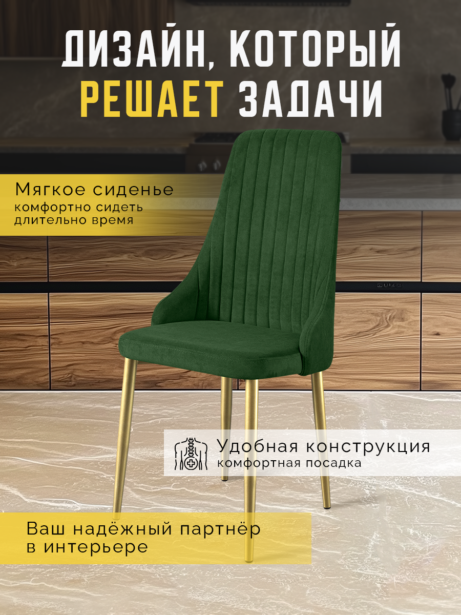 Характиристики этого товара не найдены!Отзывы на Стулья для кухни Кора 2 шт мягкие, комплект, темно-зеленый с золотистыми ножками
