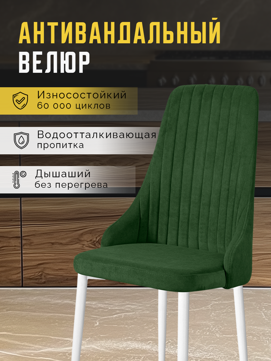 Характиристики этого товара не найдены!Отзывы на Стулья для кухни Кора 2 шт мягкие, комплект, зеленый с белыми ножками