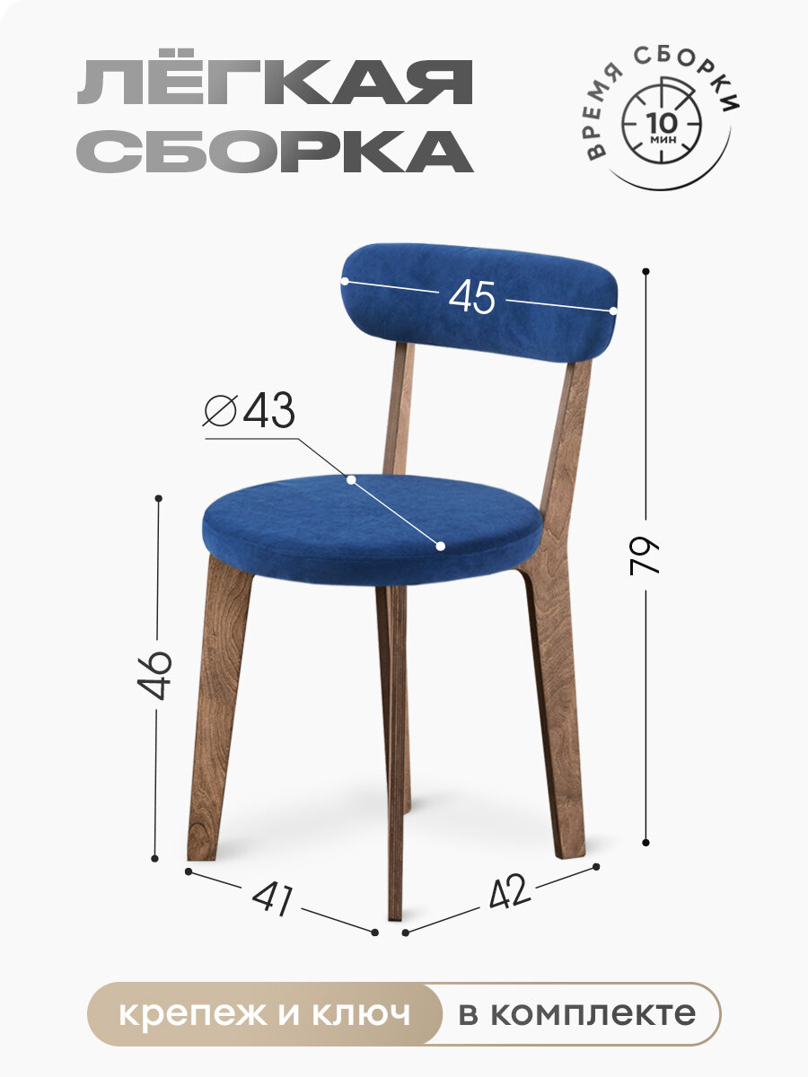 Стул для кухни мягкий со спинкой для дома дуб + синий, нагрузка до 120кг 6 600 ₽