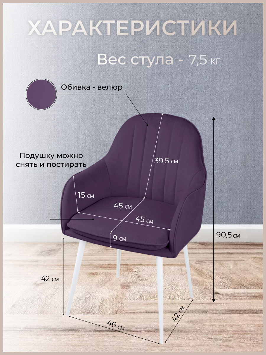 Отзывы на Стул для кухни, дома, офиса Санрайс, ноги белый металл, фиолетовый