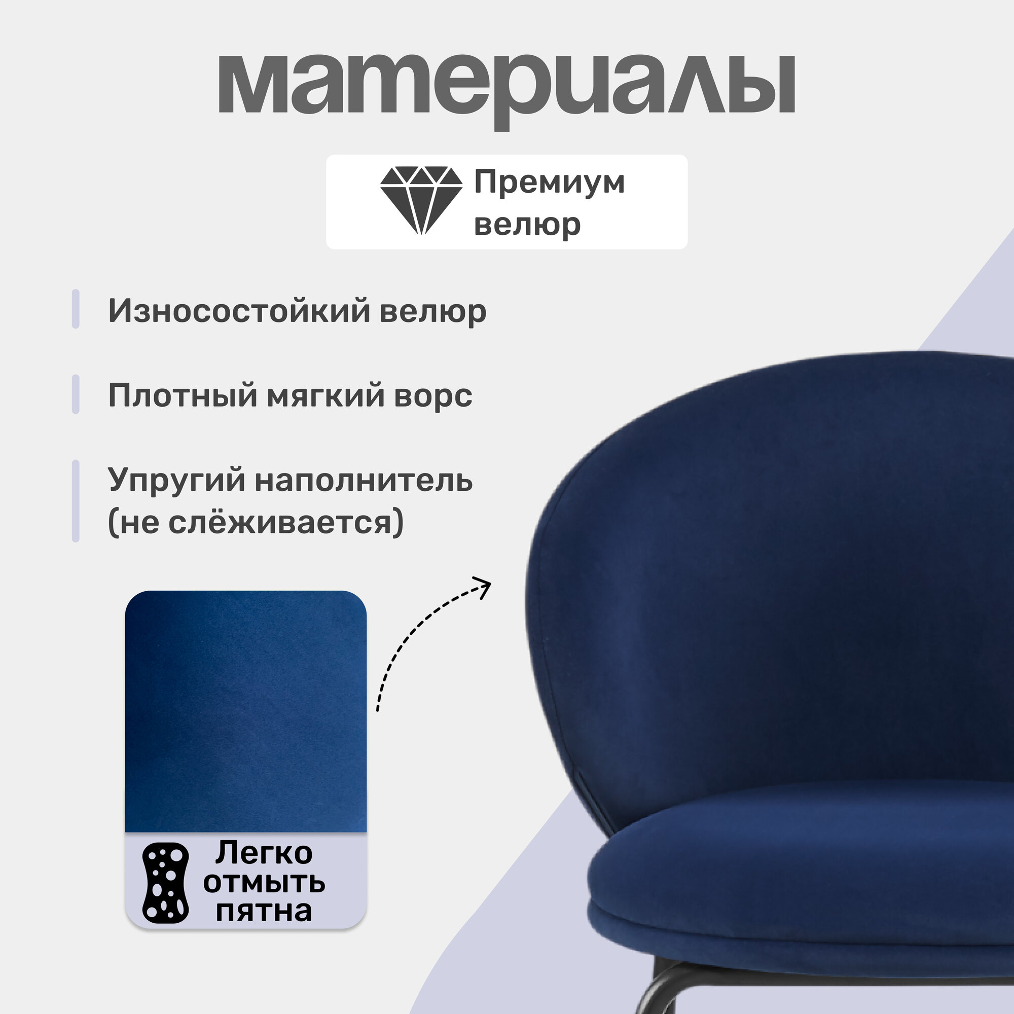 Отзывы на Барный стул велюр синий с подставкой для ног, мягкая спинка, современный, 120 кг
